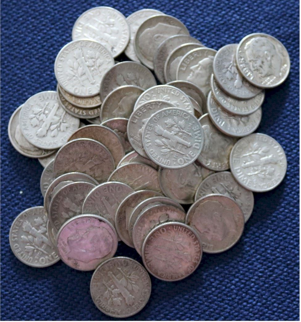 Mixed lot of 50 x United States silver dimes 1940's and up. 50pcs