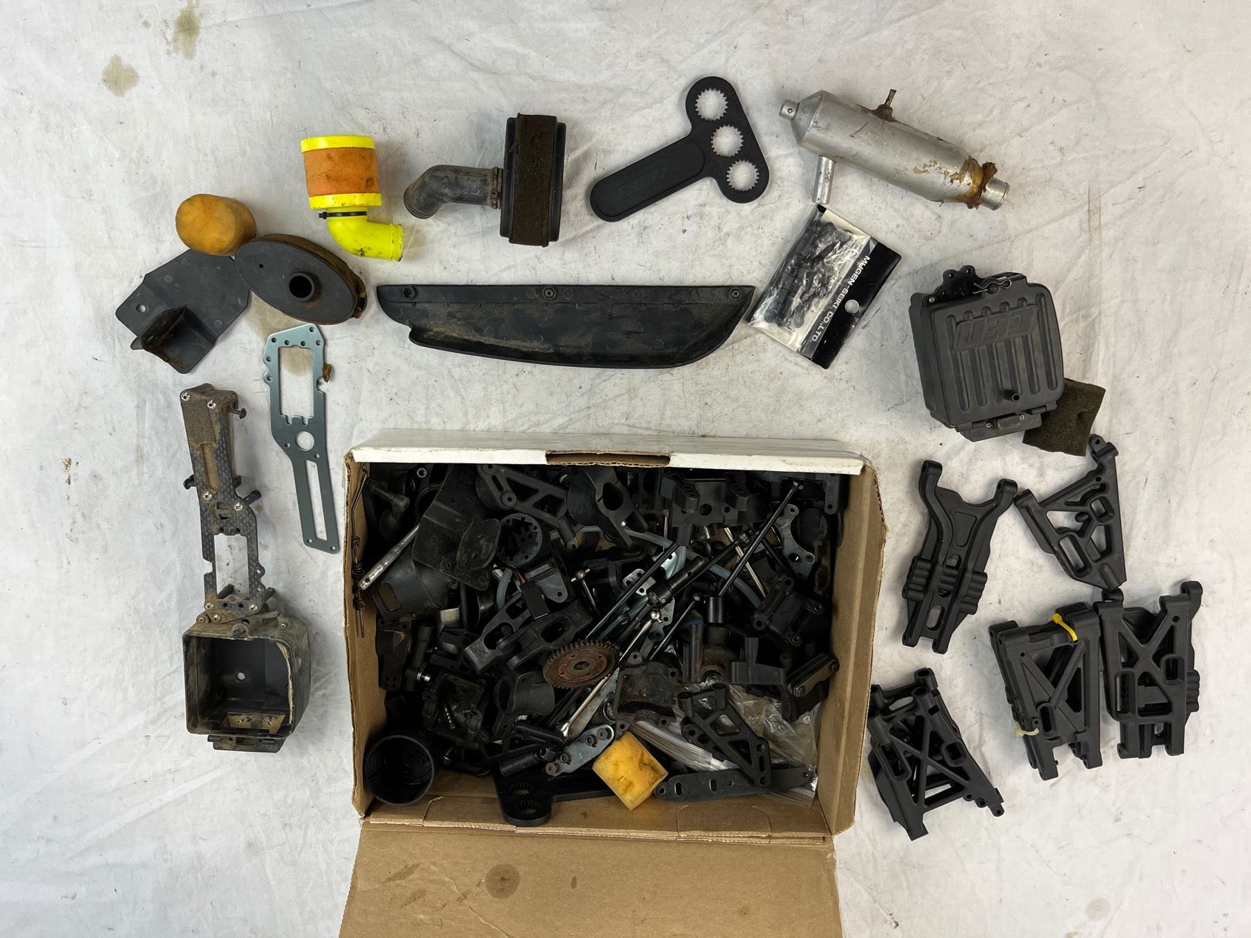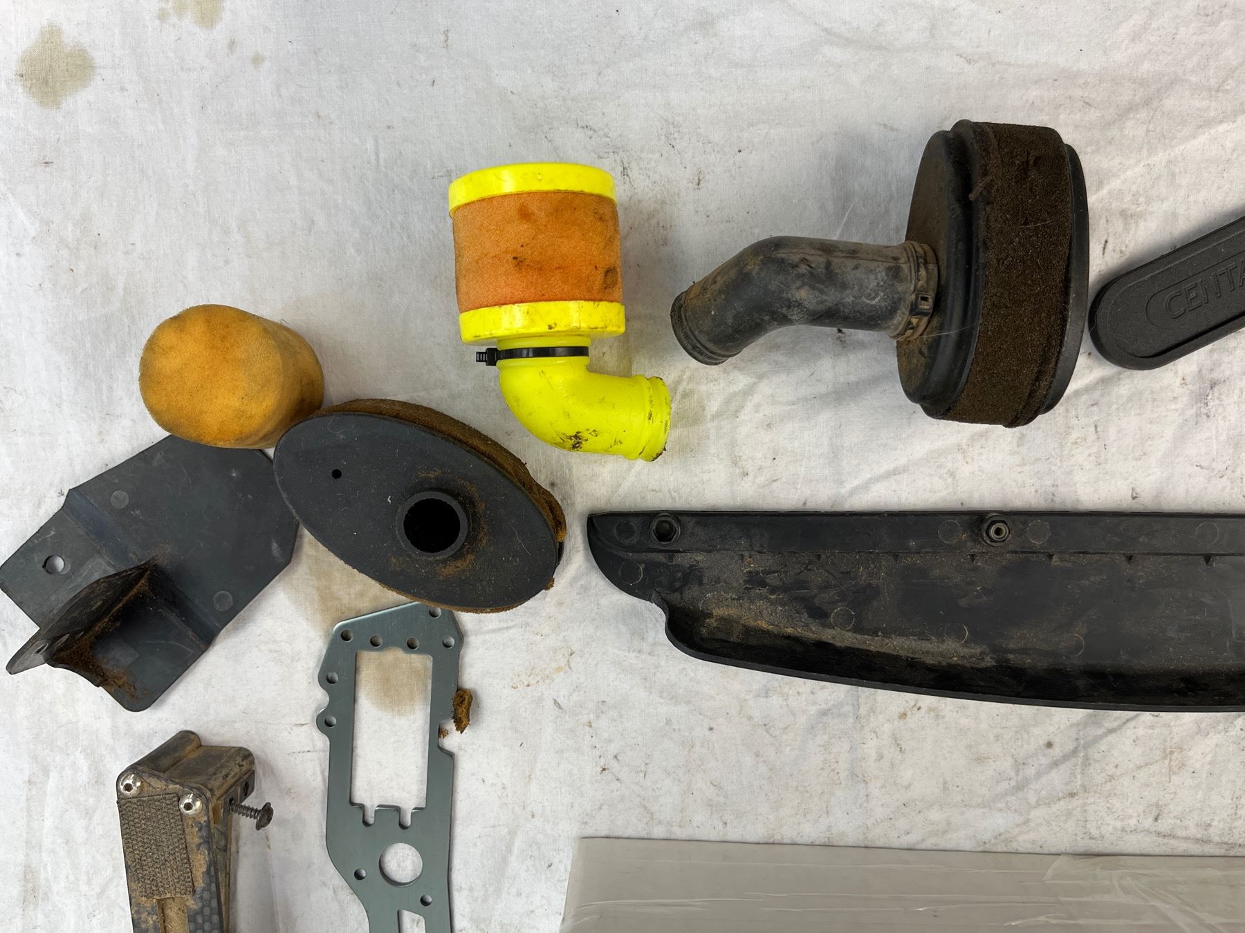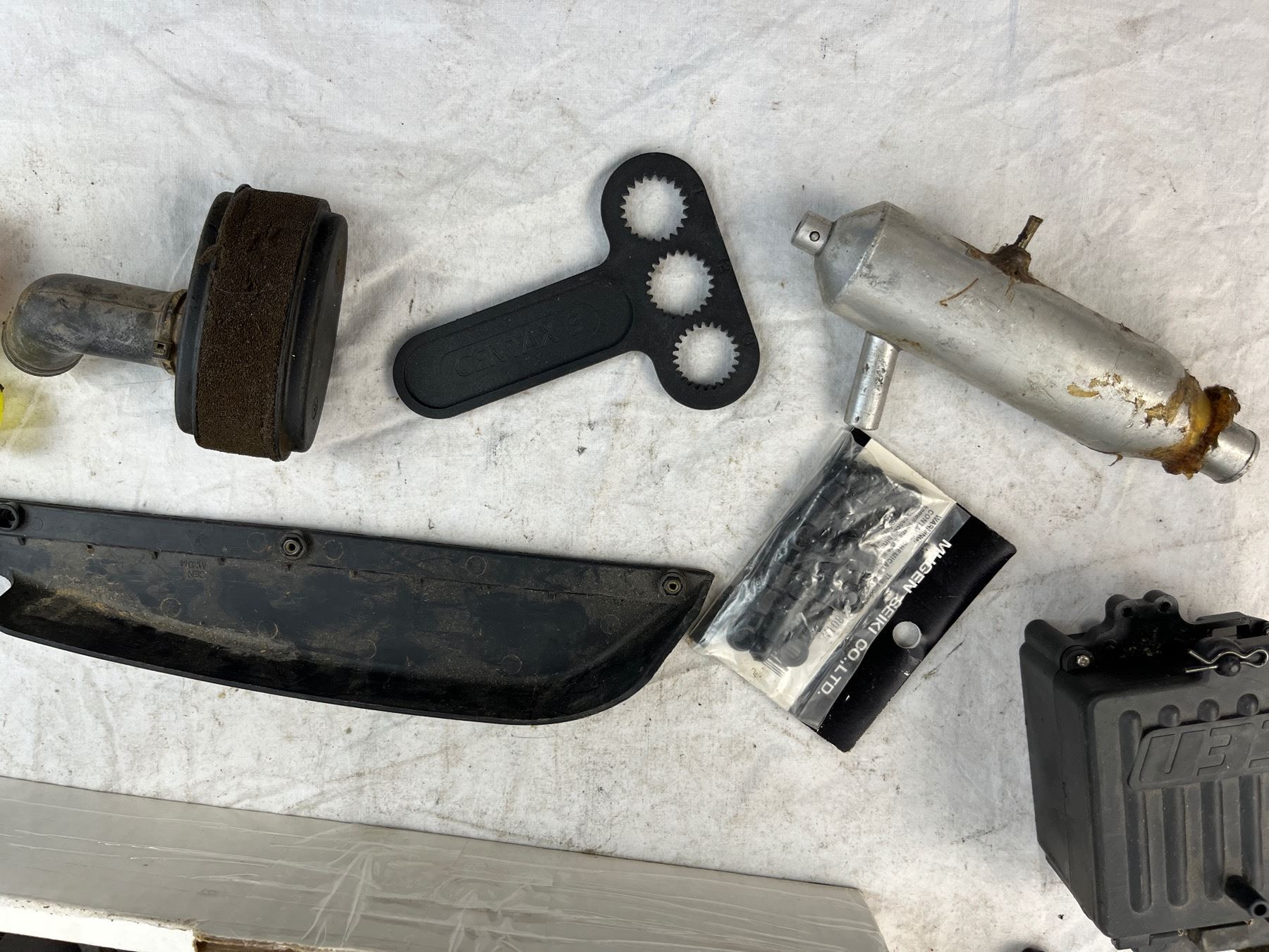 including suspension arms, exhaust pipes and air filters with assorted mixed components.