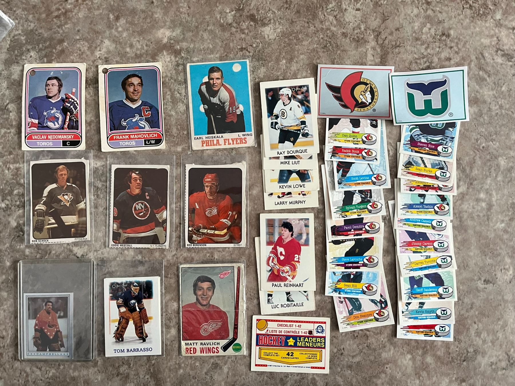 Mixed lot of hockey cards. O Pee Chee (OPC), WHA, Lipton, Topps Fuhr mini, Paninis, OPC Minis.