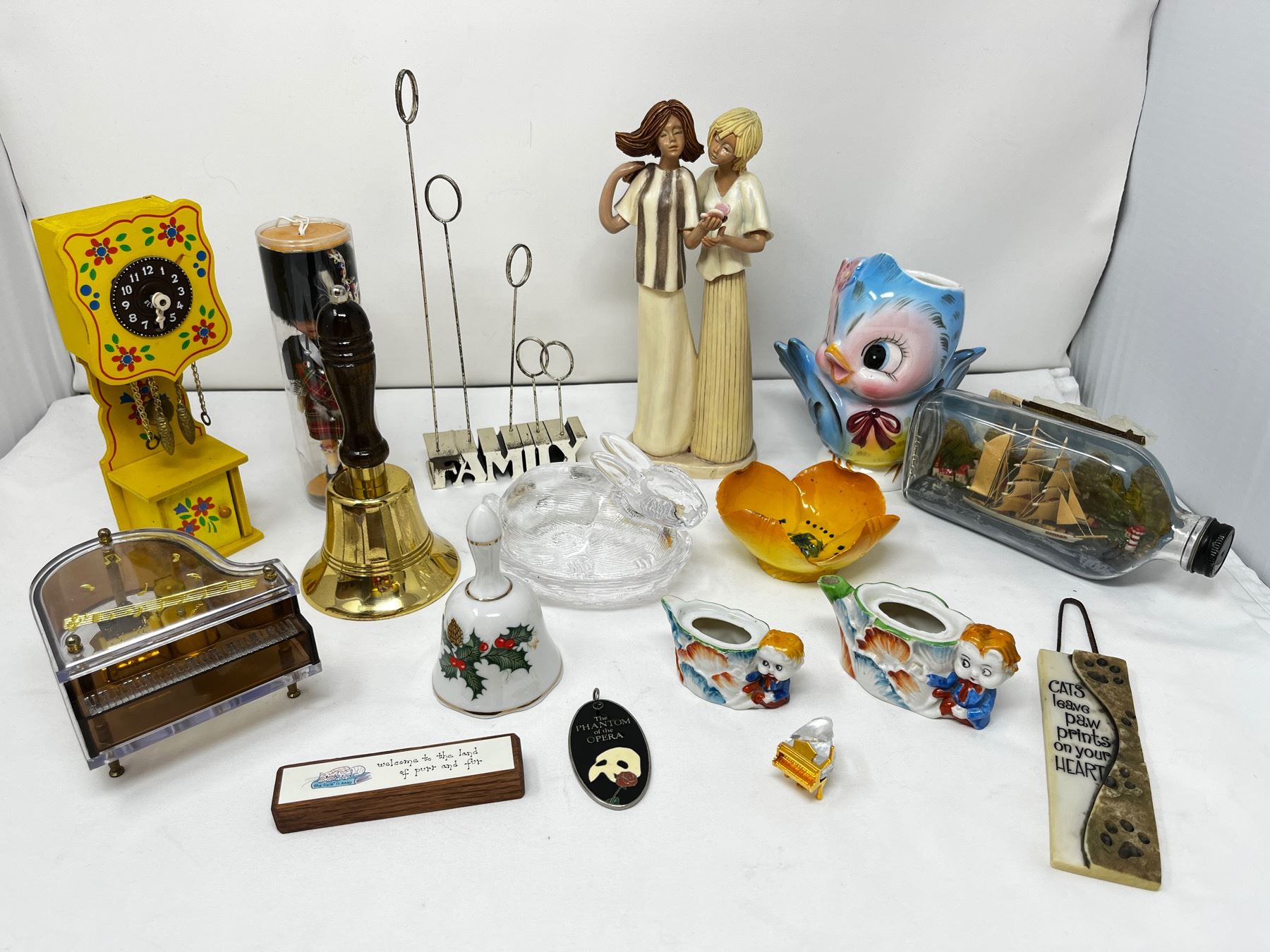 Including bells, music box, figurines and ship in bottle. Various designs and themes.
