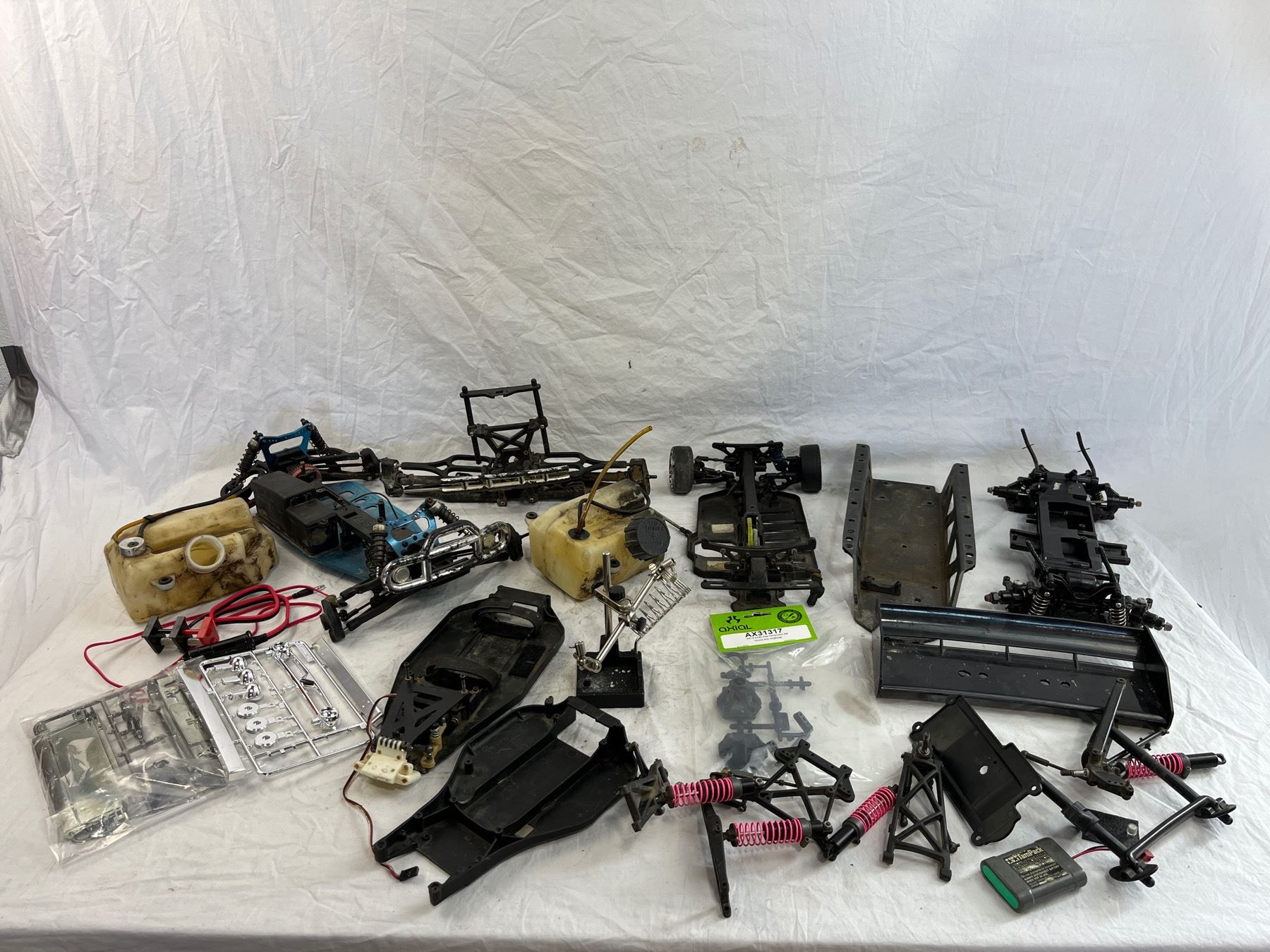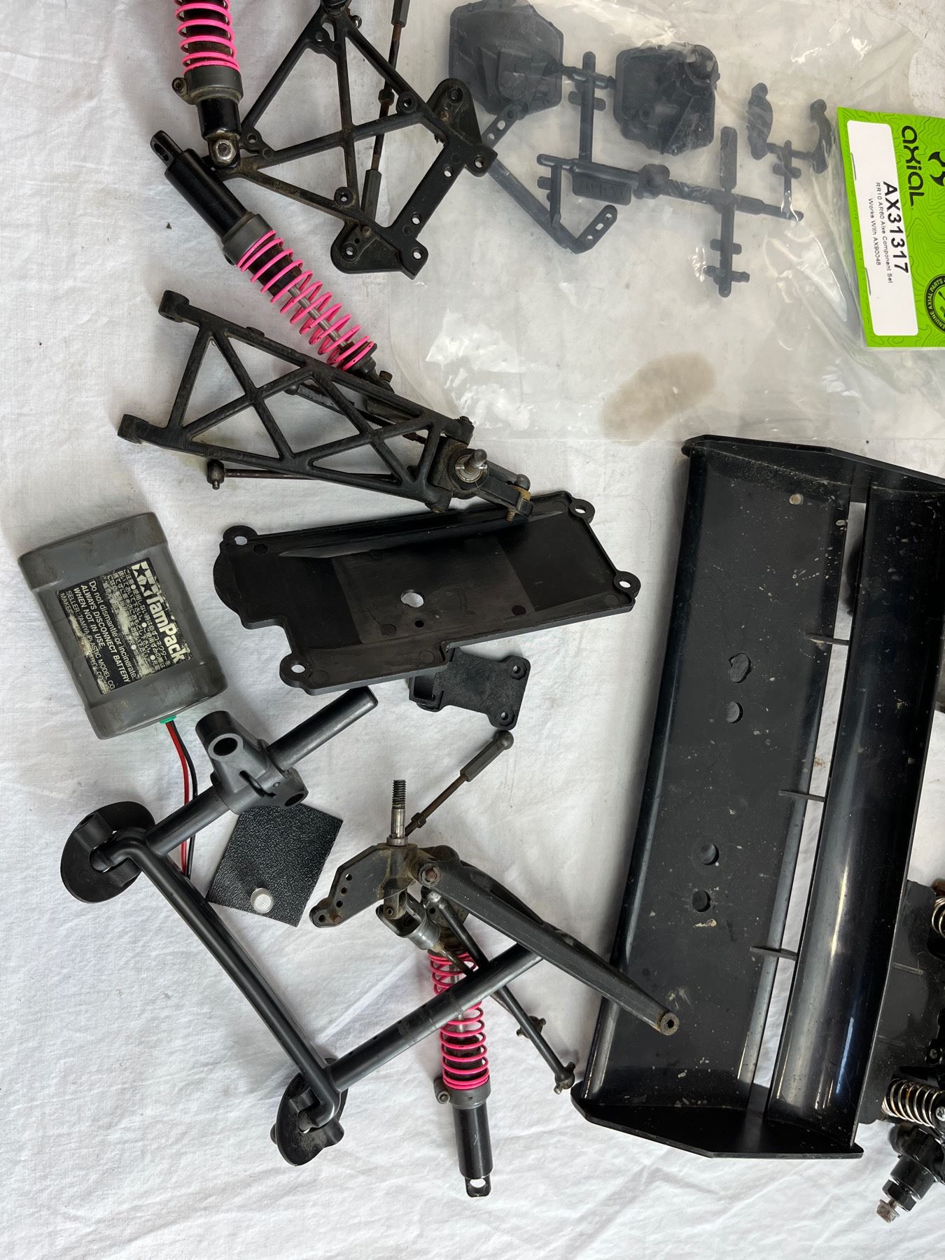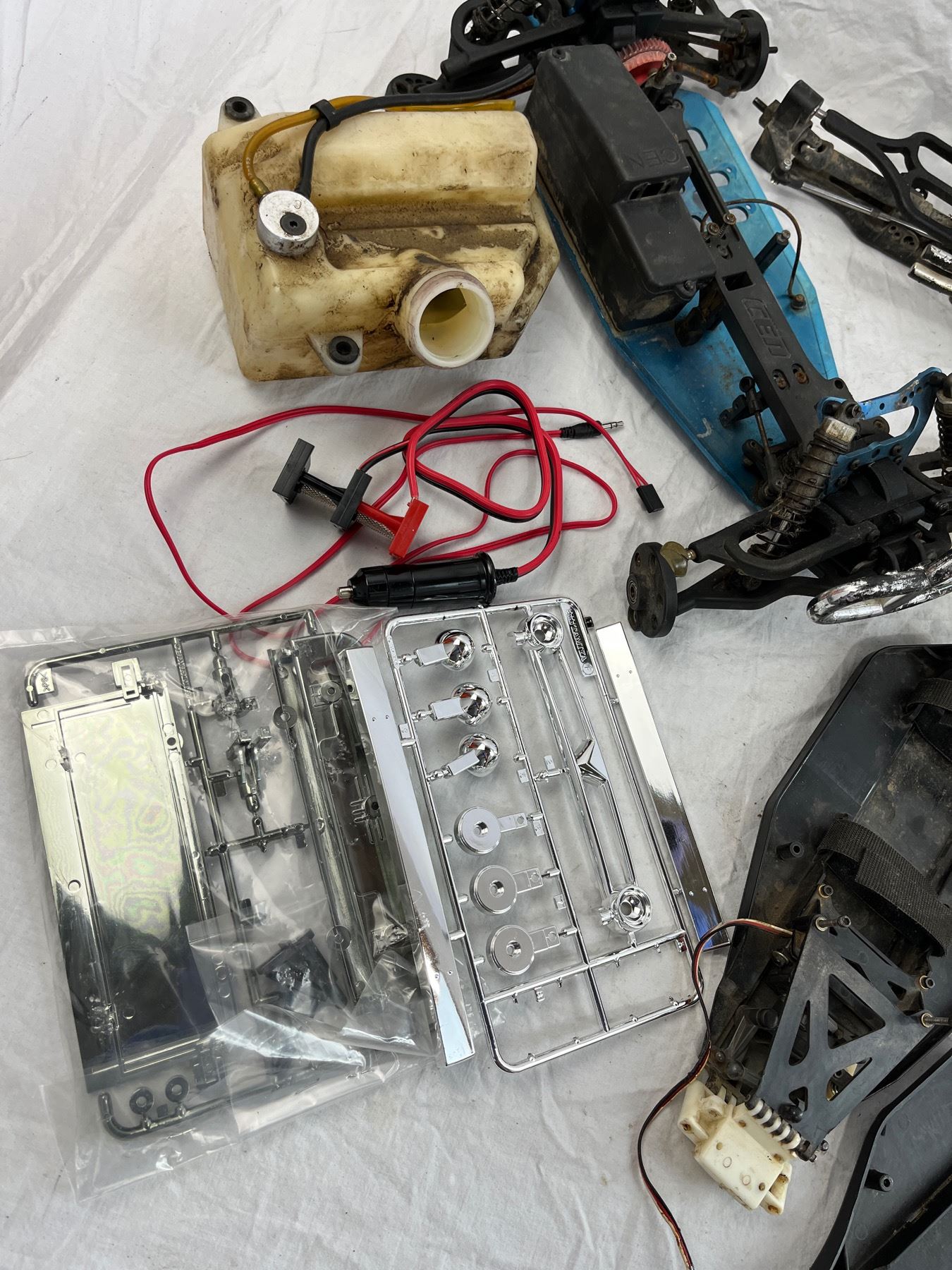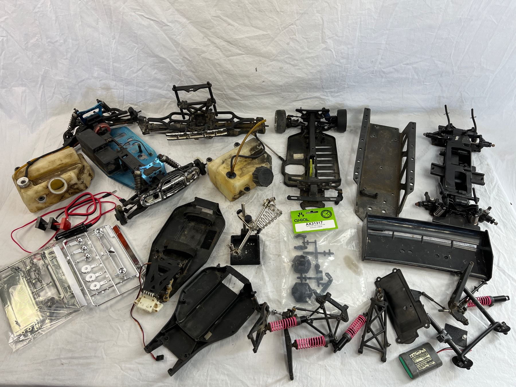 Including skid plates, suspension assemblies, fuel tank and various other RC car components.