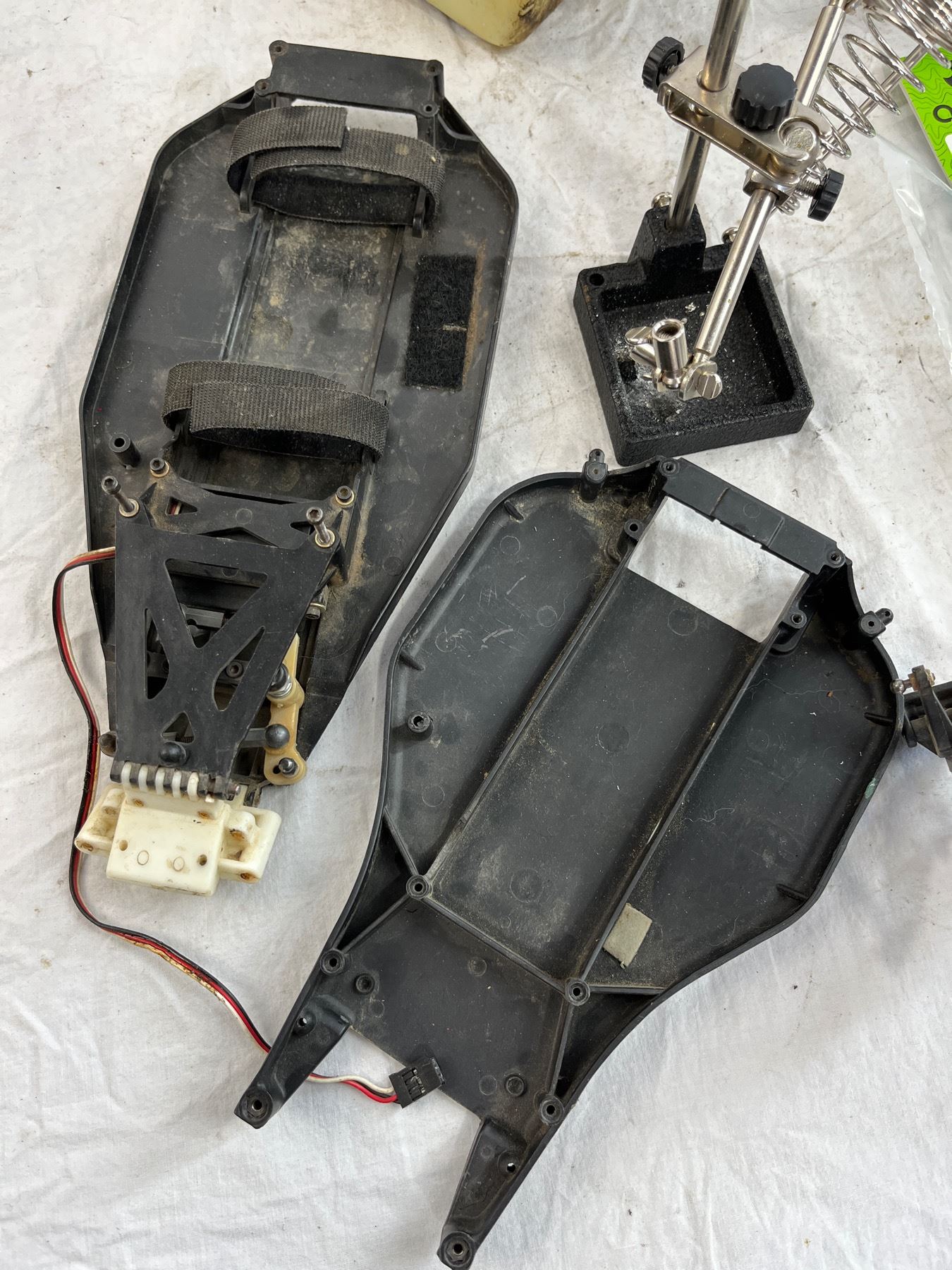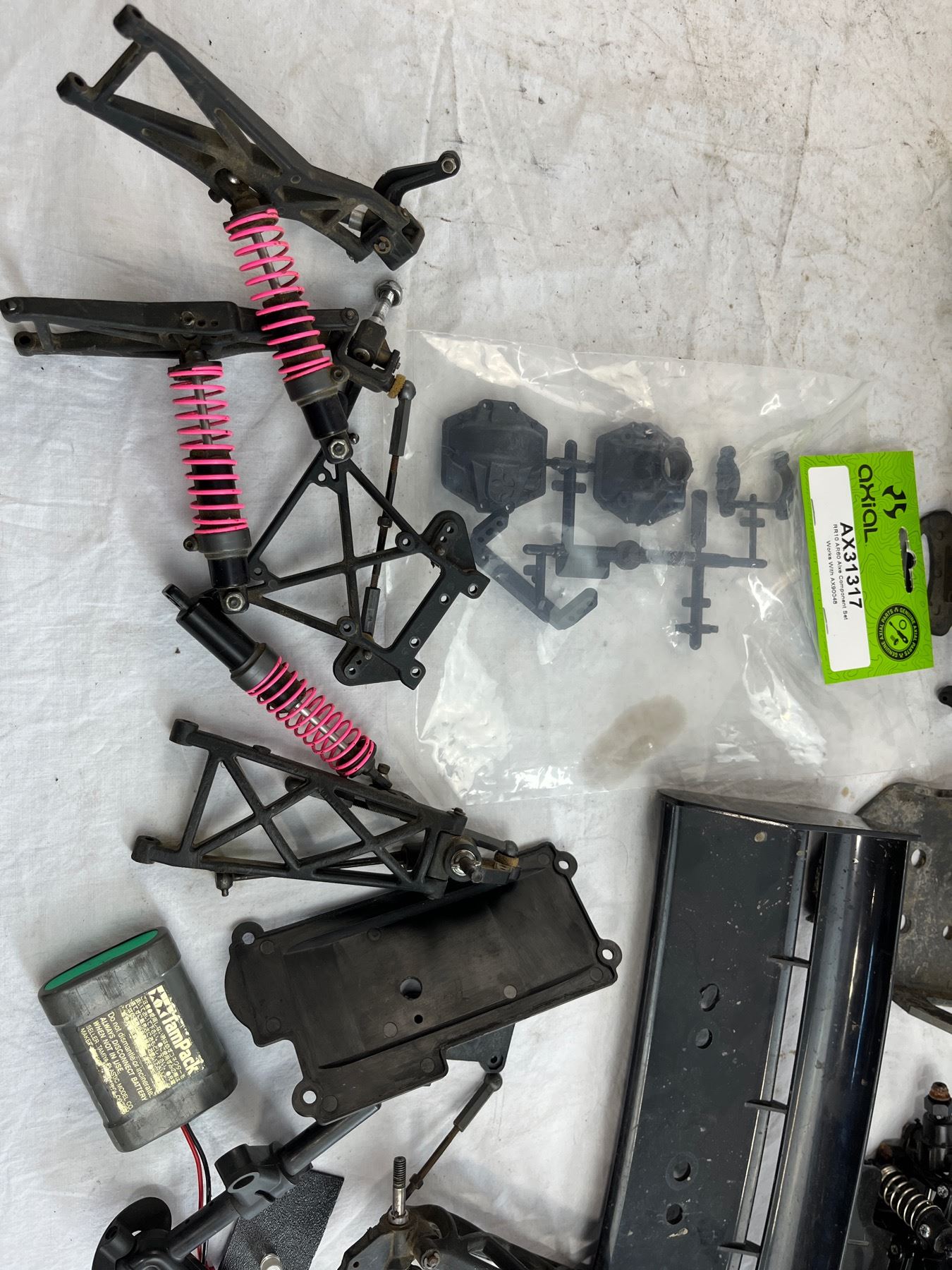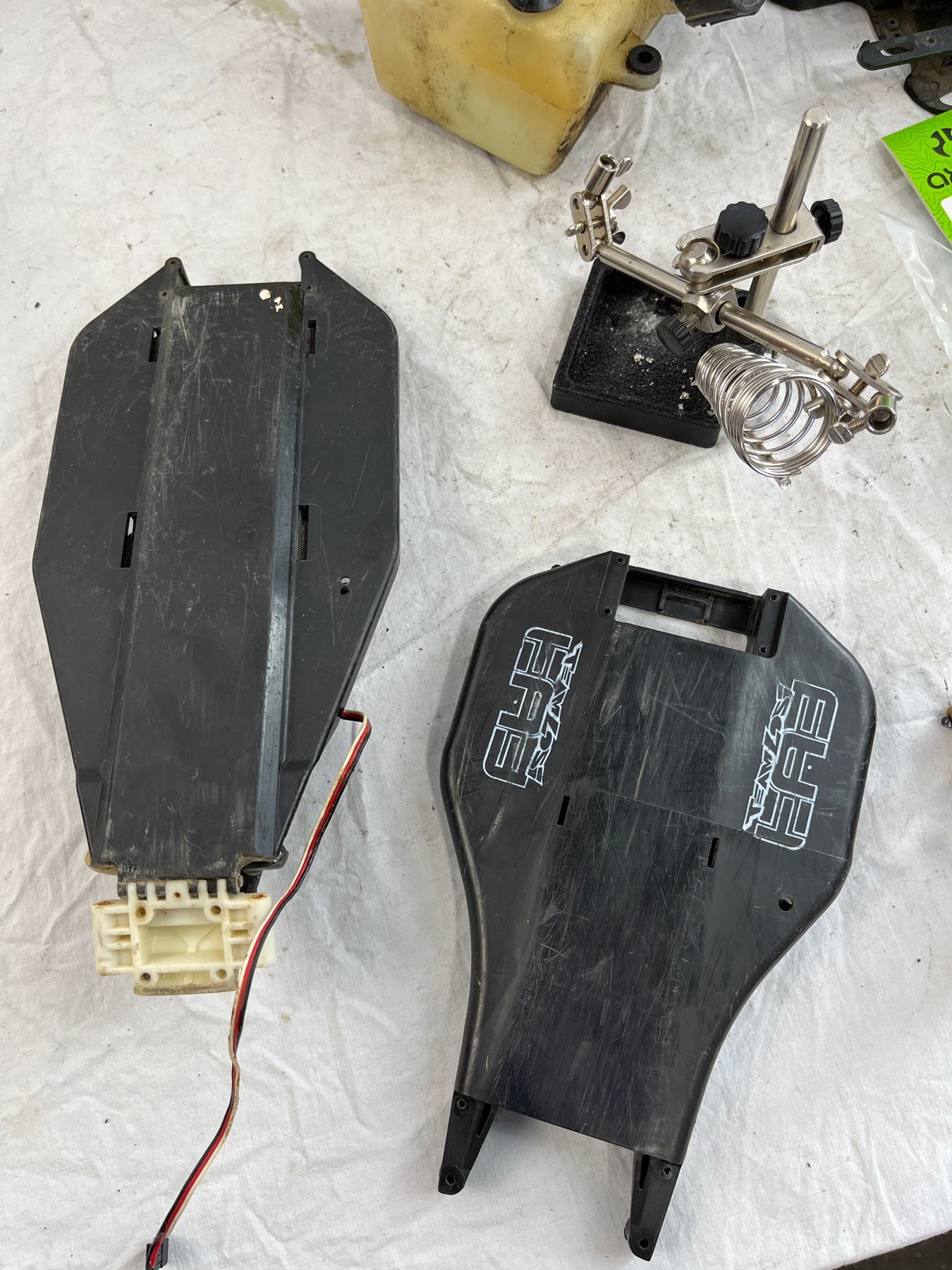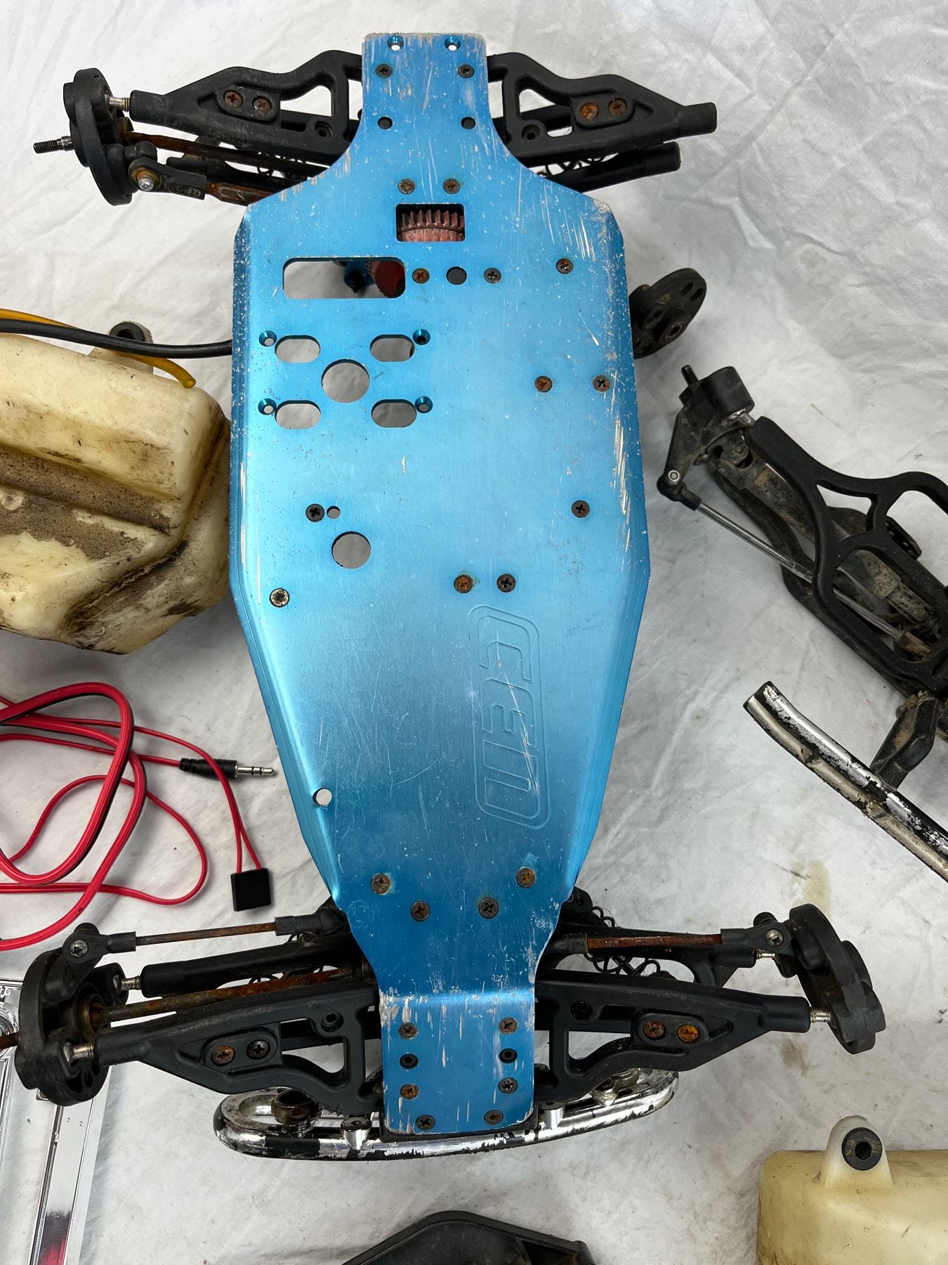 Including skid plates, suspension assemblies, fuel tank and various other RC car components.