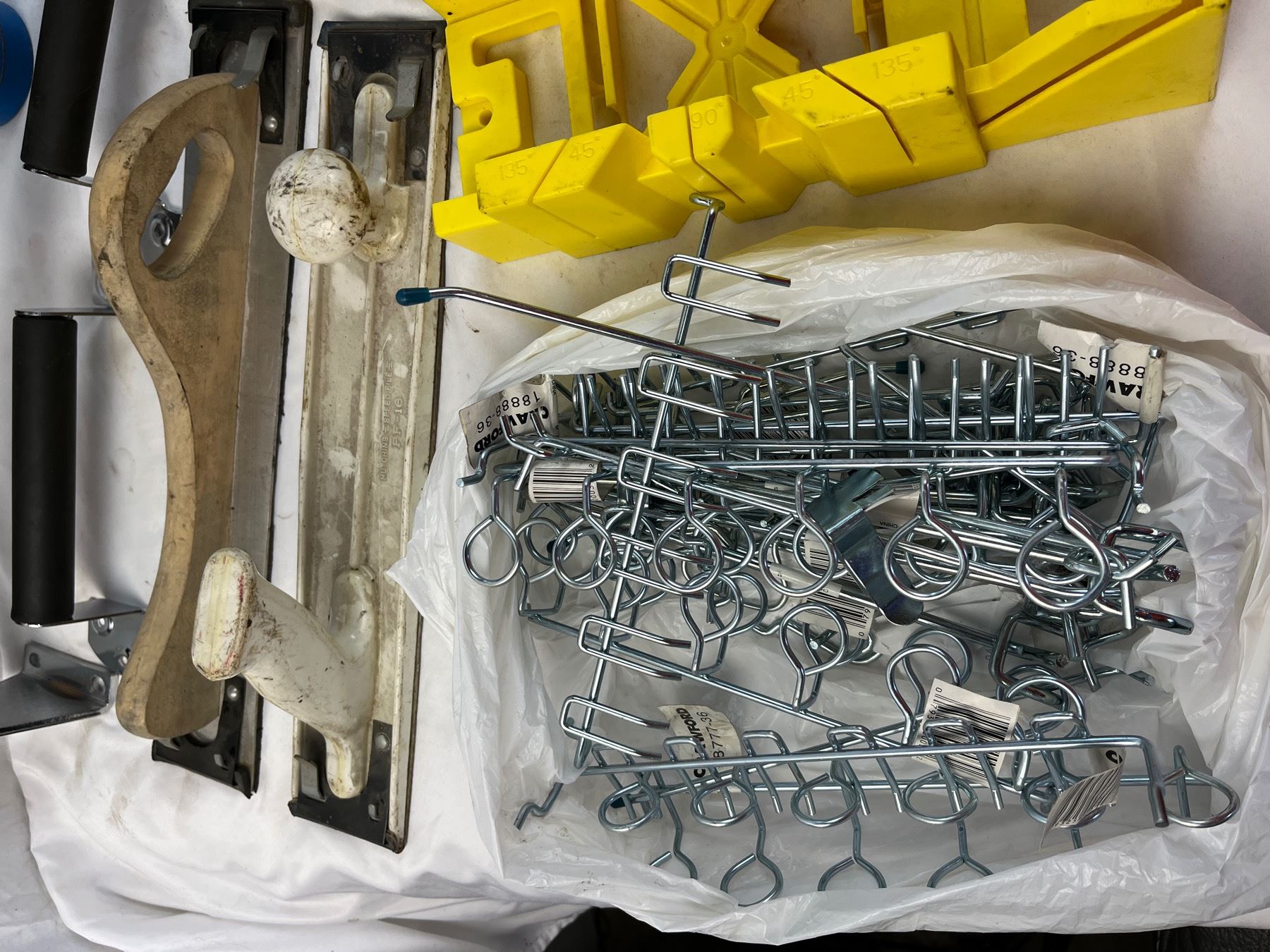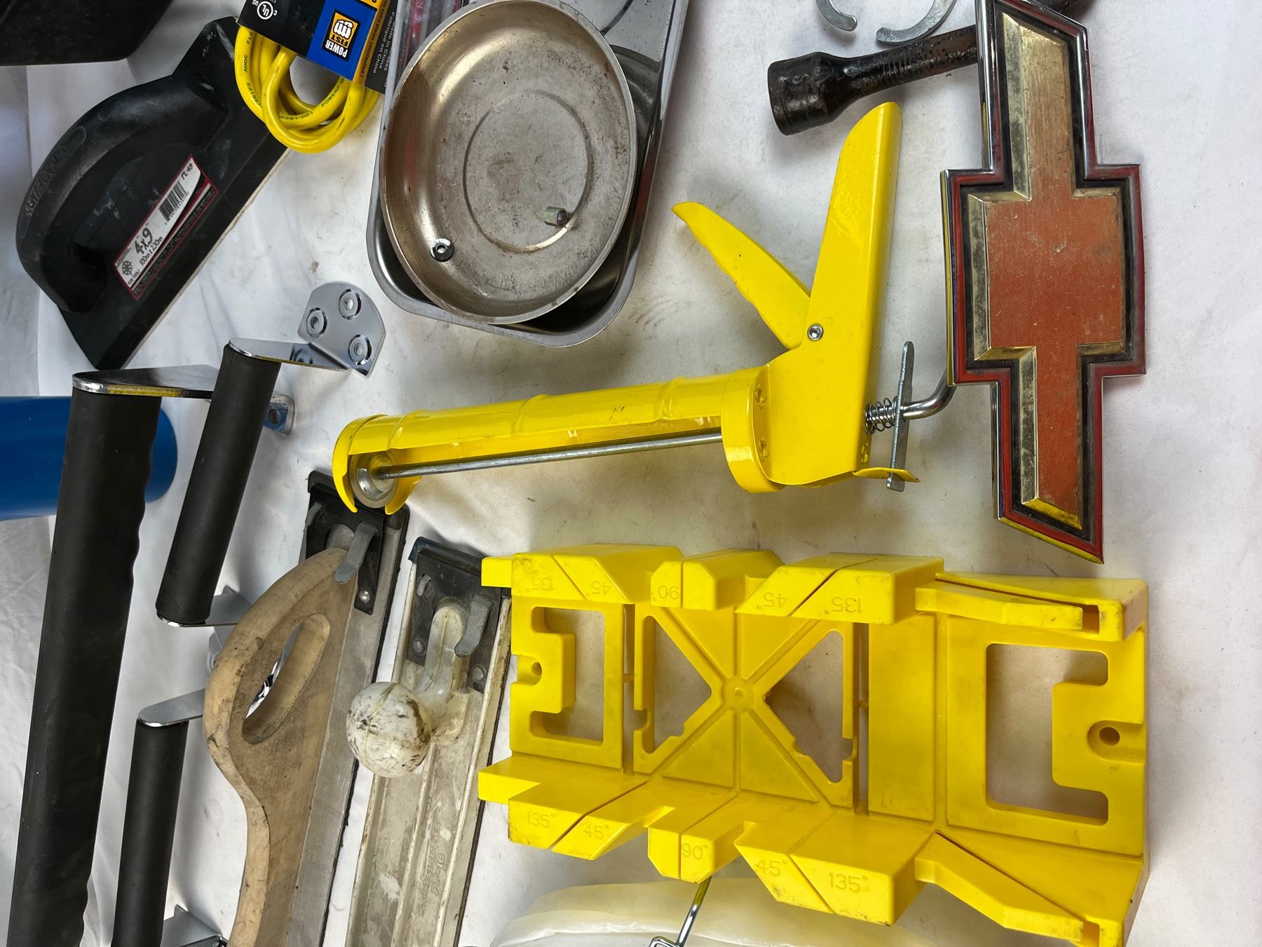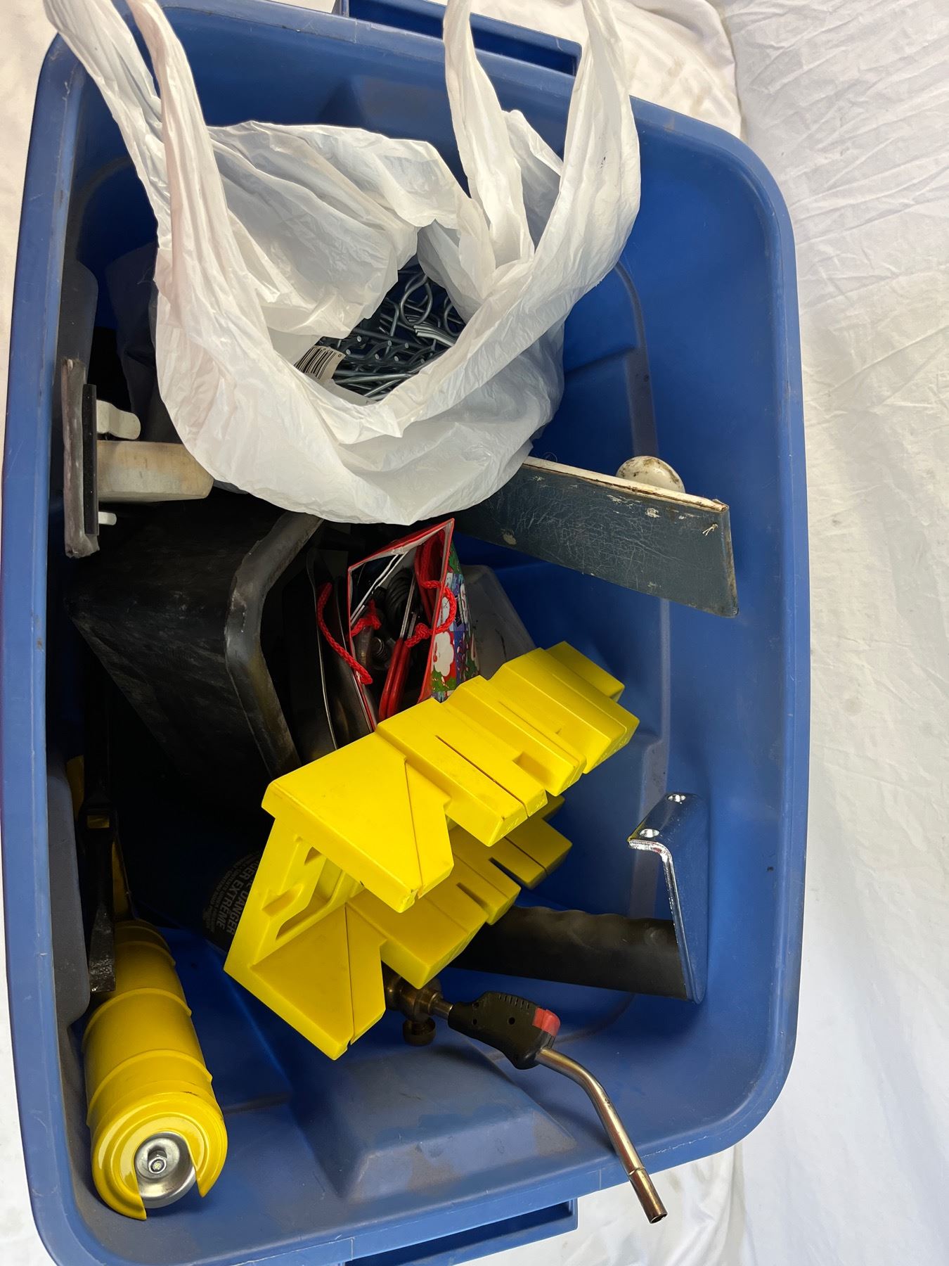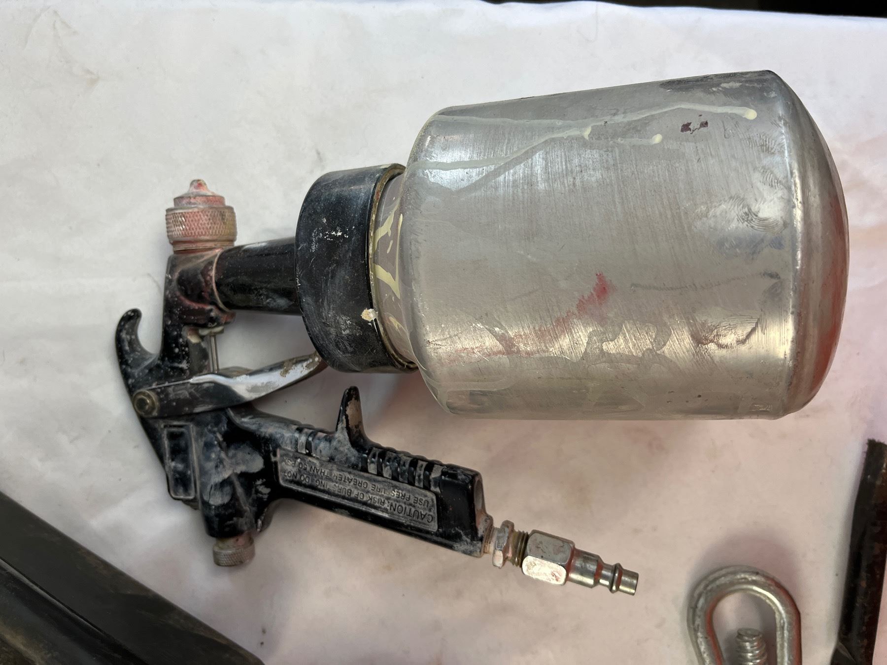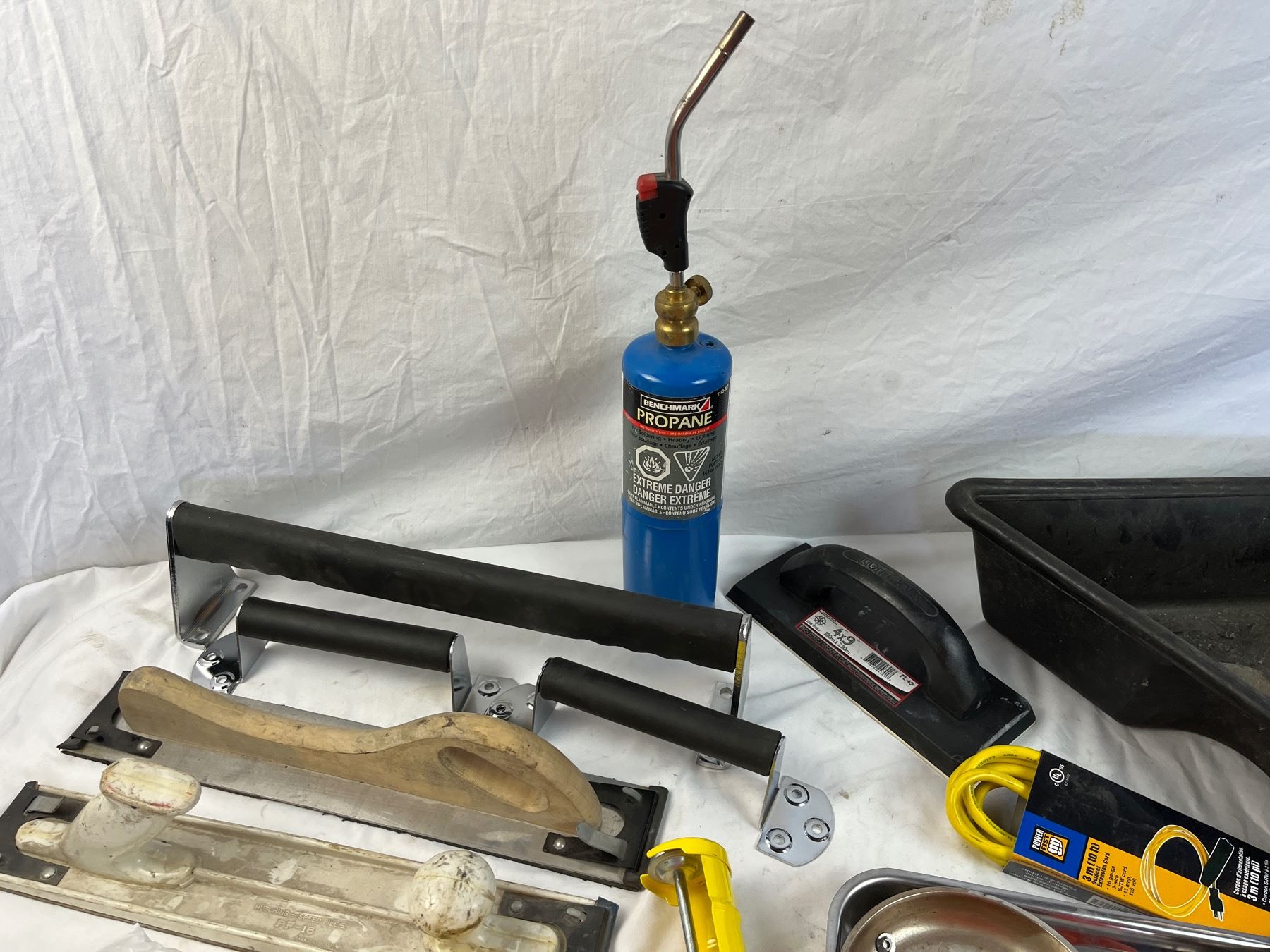 Including bag of wall mount screwdriver holders, spray gun, drip pans, torch, and miscellanious other items.