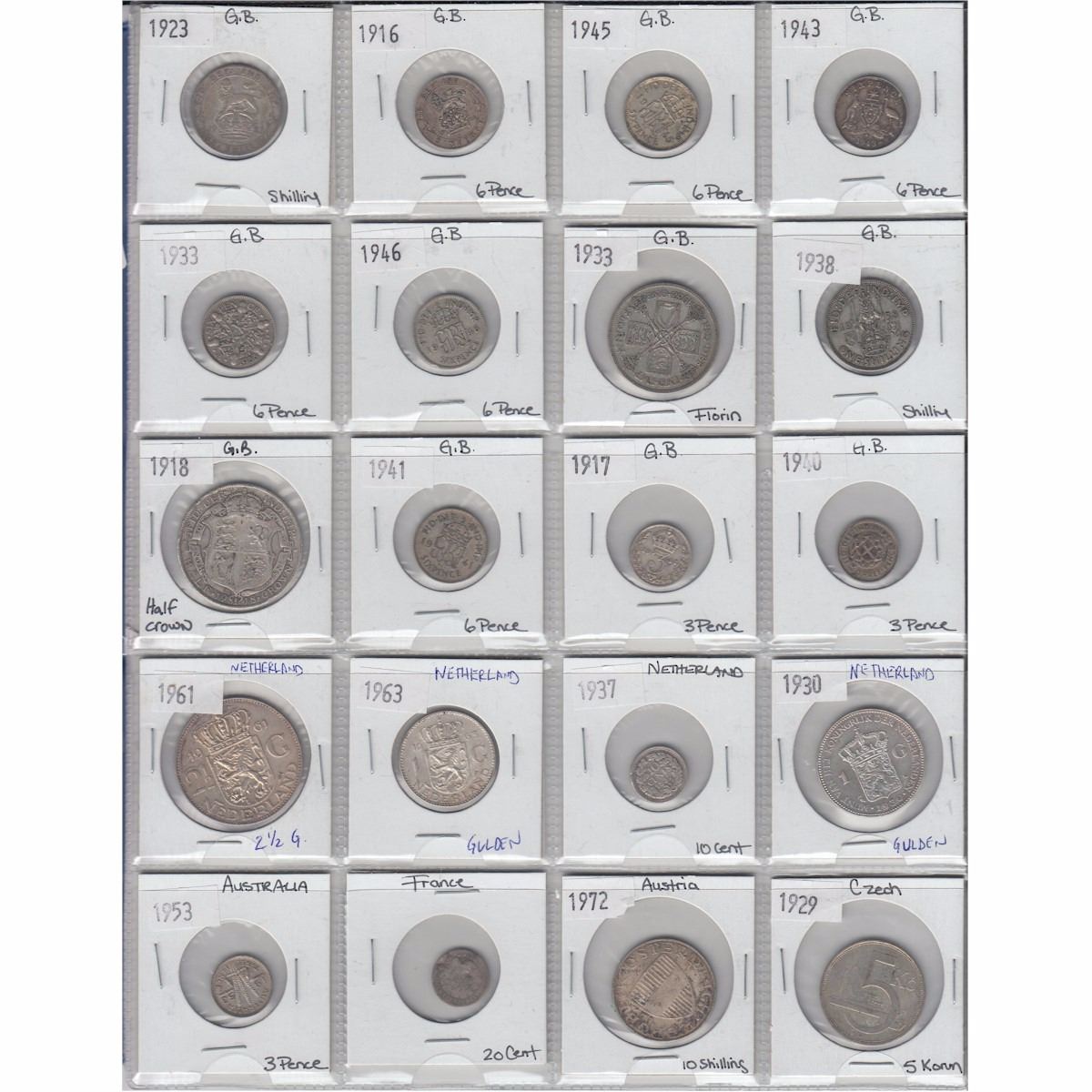 Mixed page of 20 x Silver World Decimal coins-Oldest date 1916