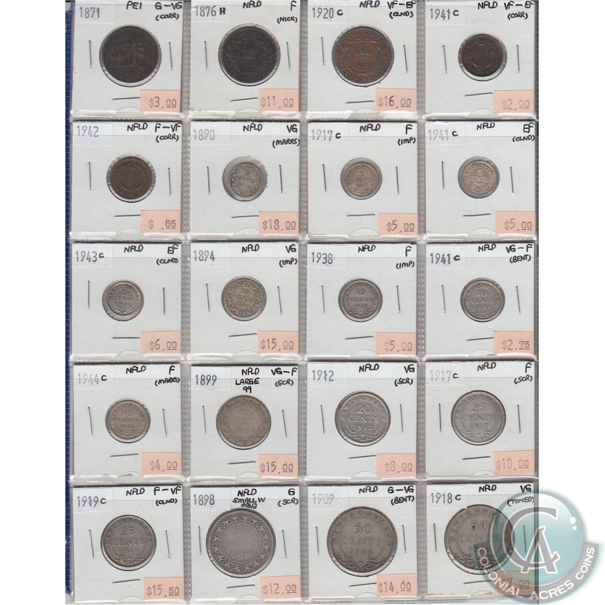 Mixed page of 20x Newfoundland & PEI coins-Oldest Date 1871. Sold As Is, No returns. Please view scan
