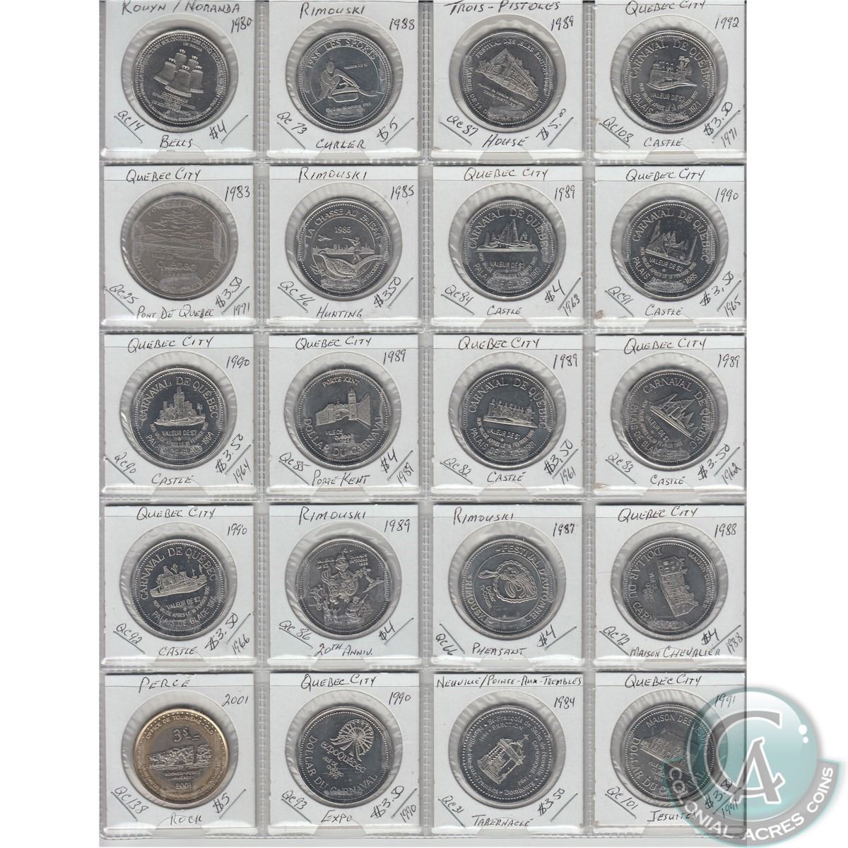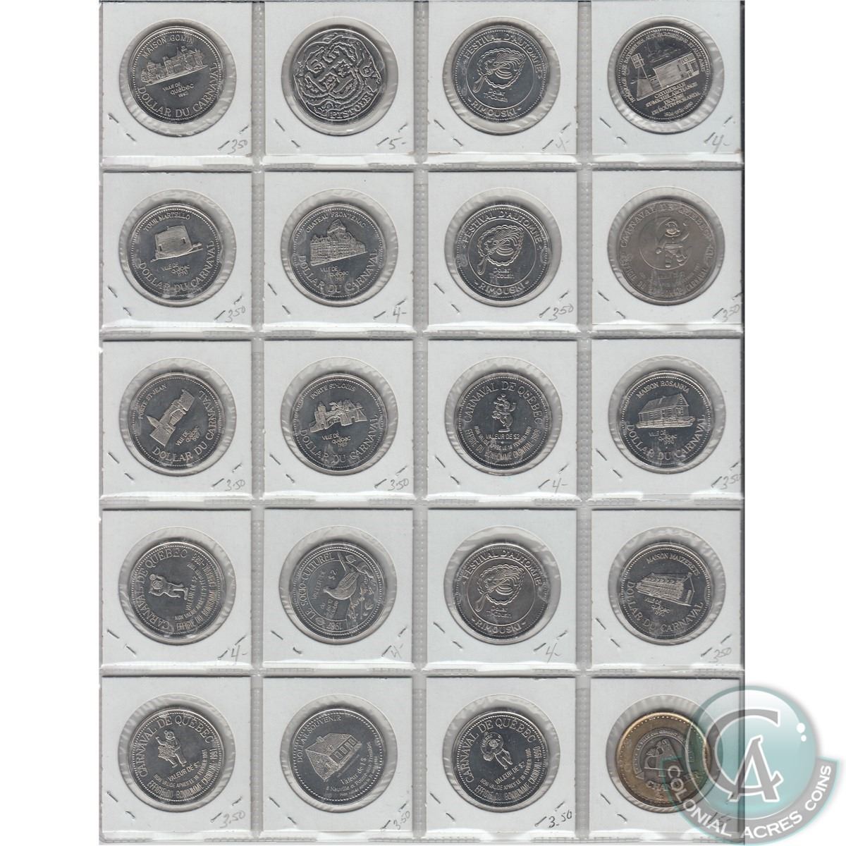 Mixed page of 20x Quebec City Trade Dollars - Oldest date 1980. Please view Scan. Sold as is, no Returns.