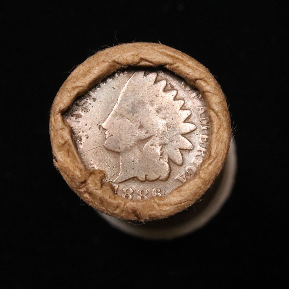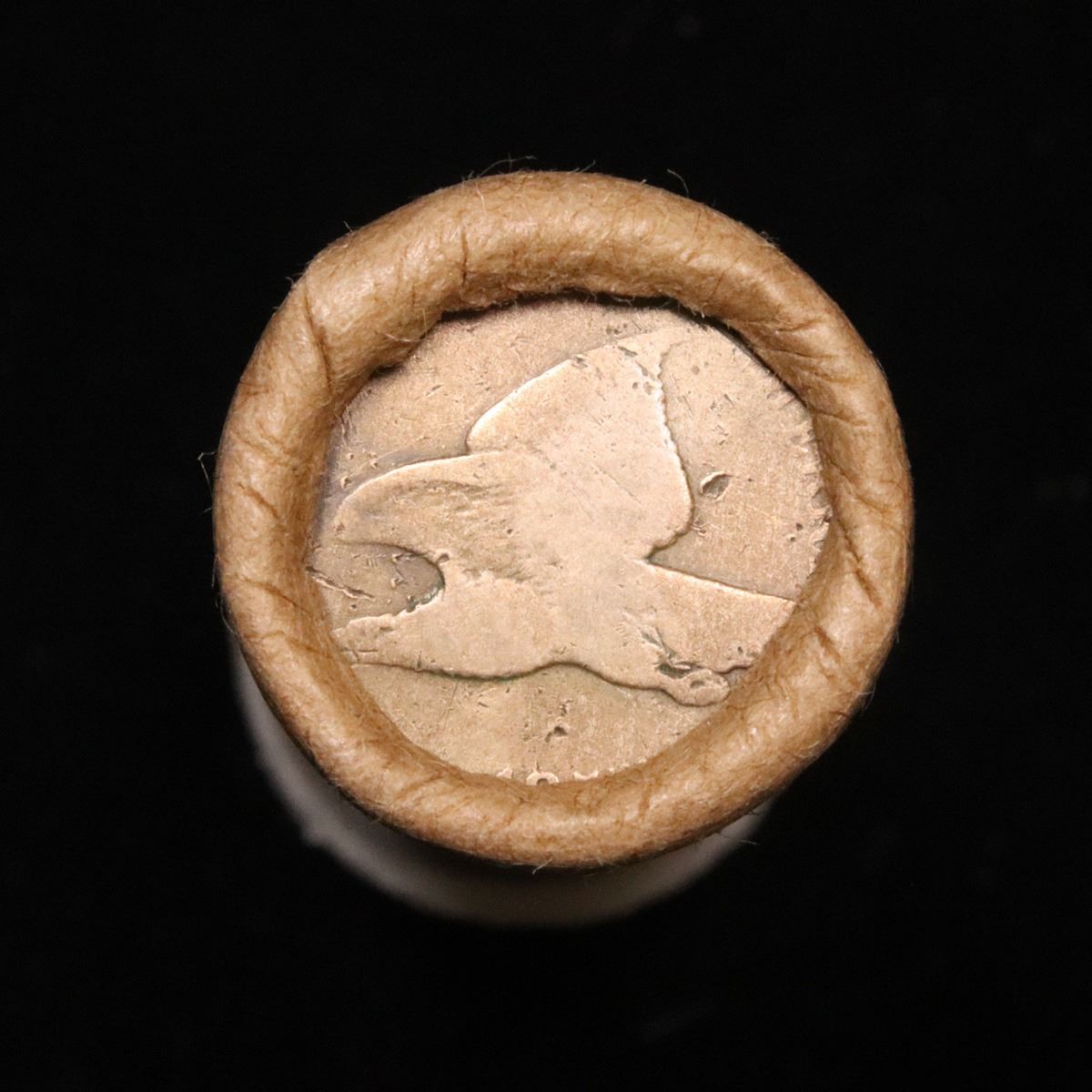 Mixed small cents 1c orig shotgun roll, 1857 Flying Eagle Cent, 1886 Indian Cent other end