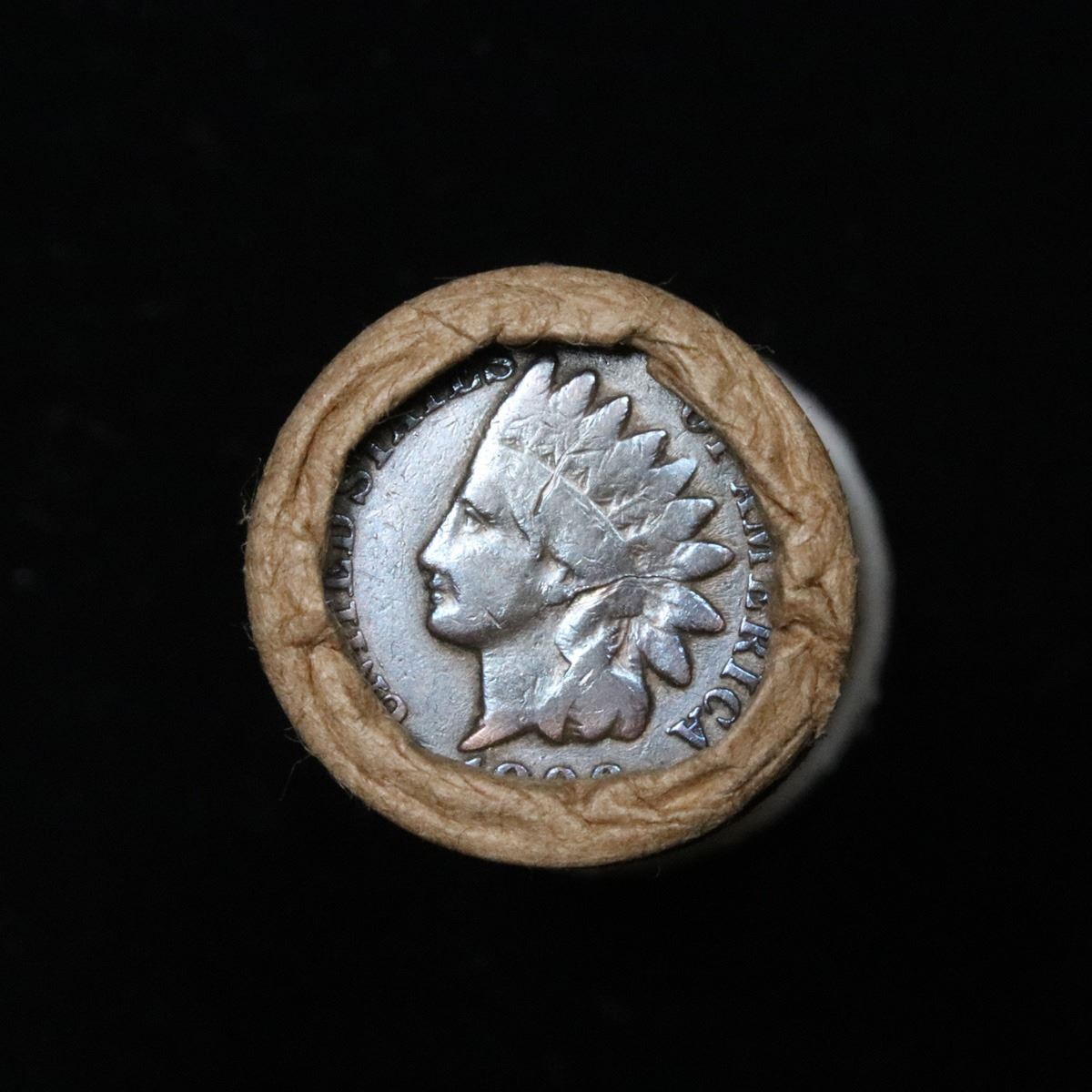Mixed small cents 1c orig shotgun roll, 1857 Flying Eagle Cent, 1899 Indian Cent other end