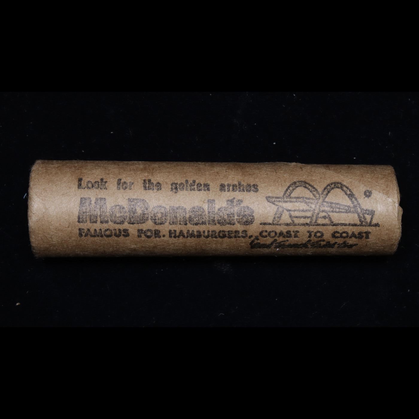 Mixed small cents 1c orig shotgun roll, 1857 Flying Eagle cent, 1889 Indian Cent other end, McDnalds