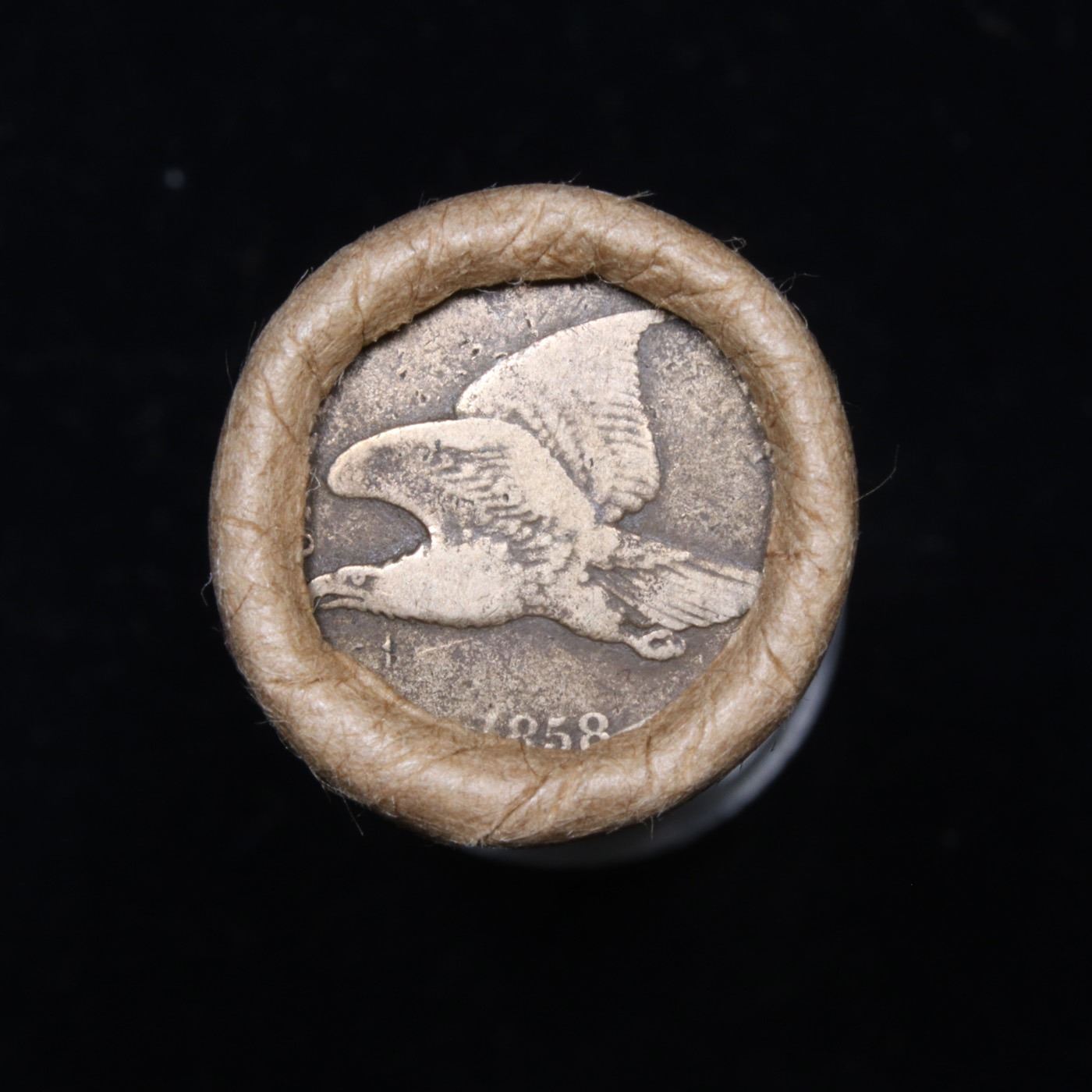Mixed small cents 1c orig shotgun roll, 1858 Flying Eagle Cent, 1896 Indian Cent other end, McDnalds