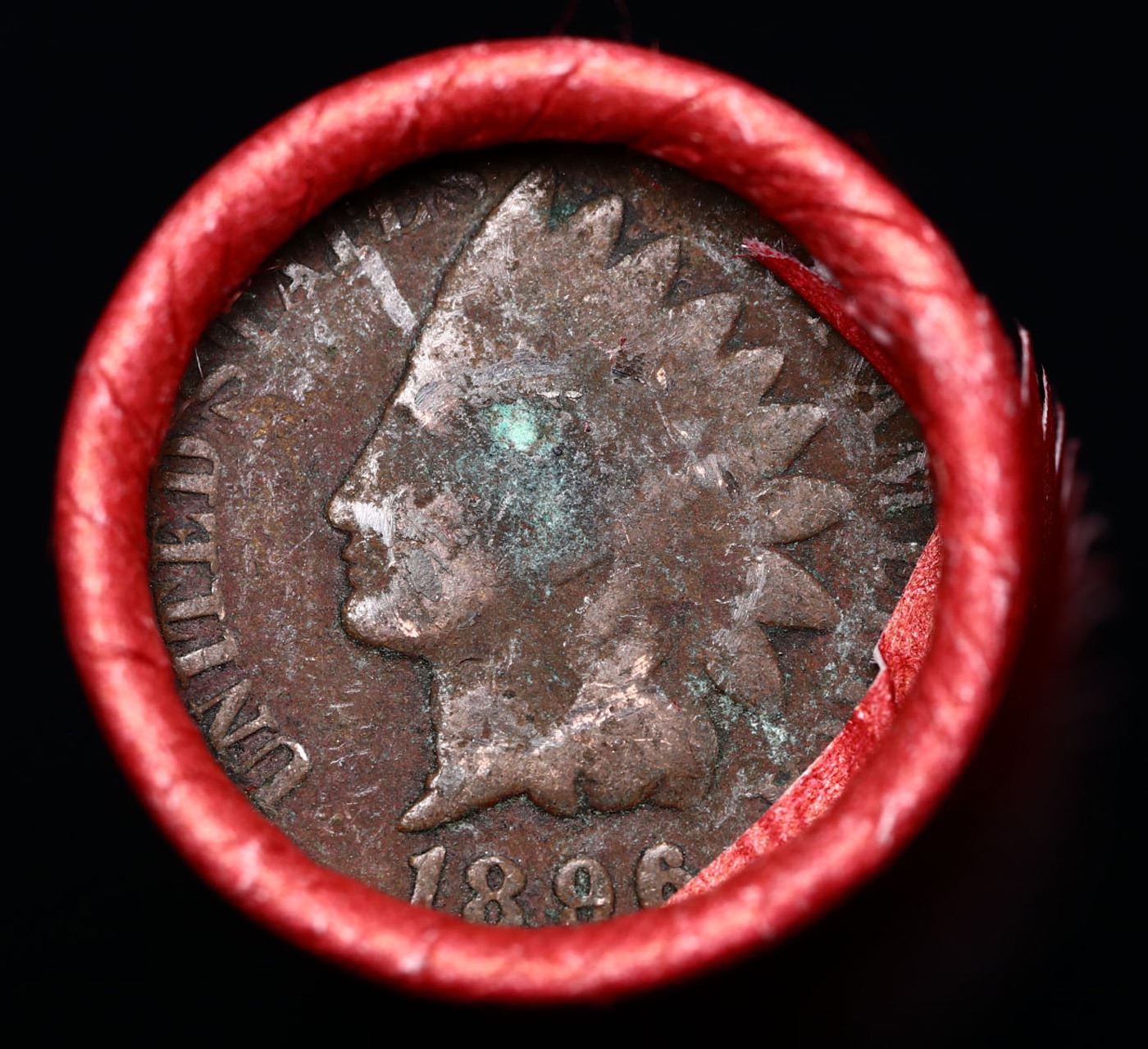 Mixed small cents 1c orig shotgun roll, 1896 Indian Cent, Indian other end, Coca Cola Wrapper
