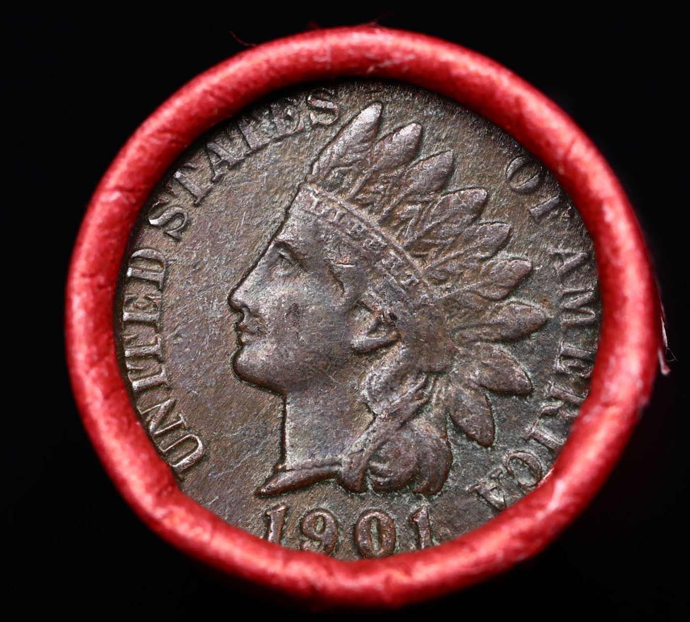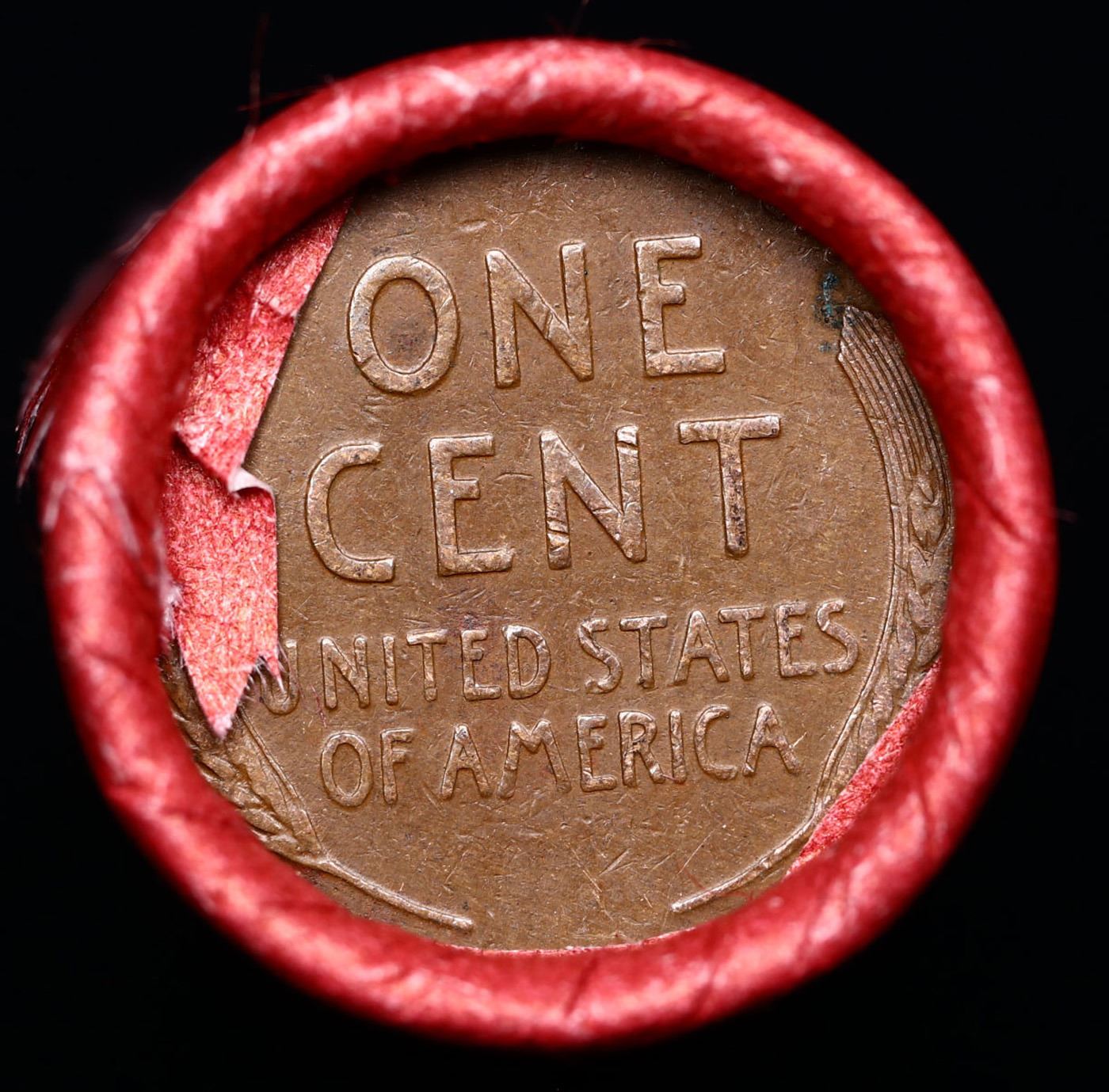 Mixed small cents 1c orig shotgun roll, 1907 Indian Cent, Wheat Cent Other end, Coca Cola Wrapper