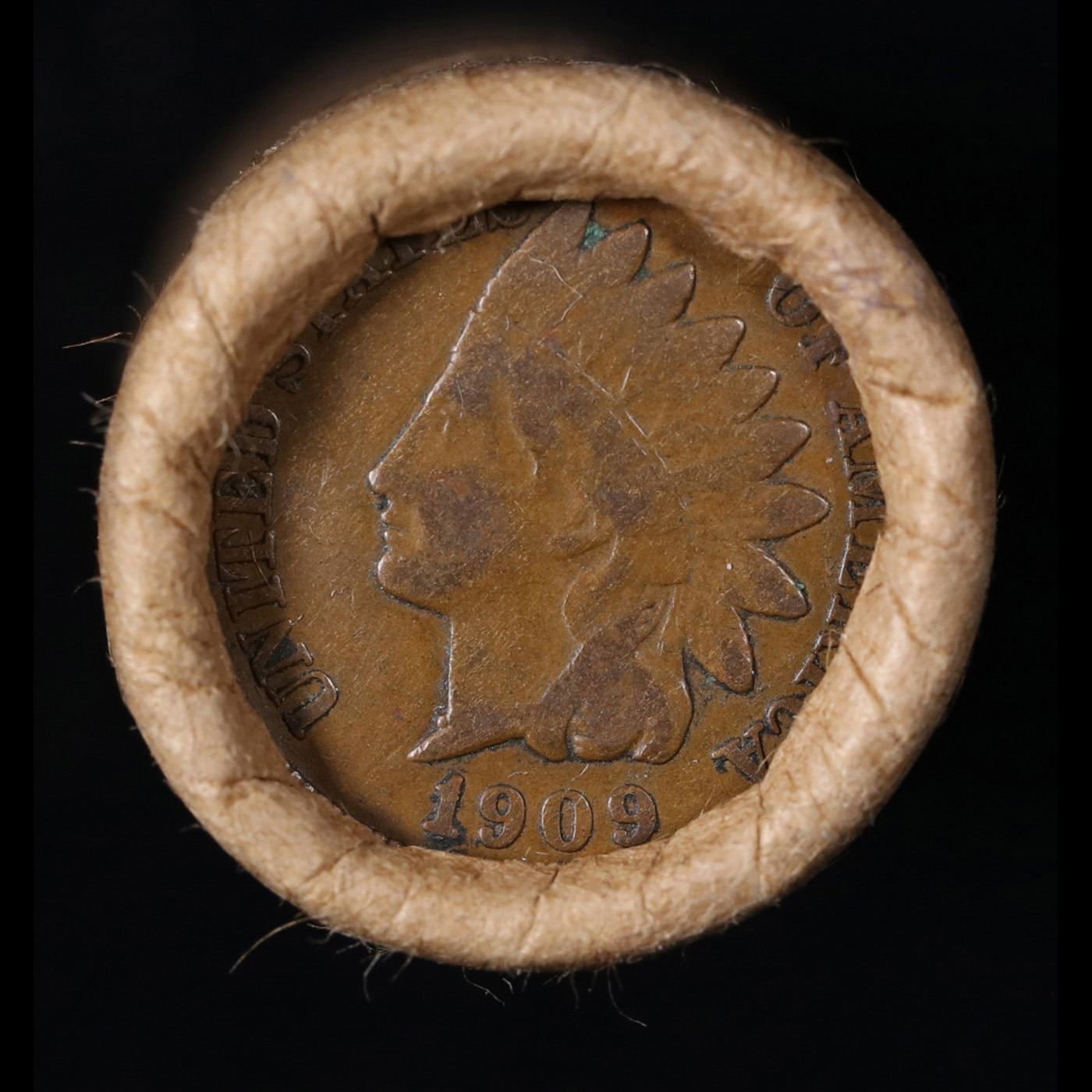 Mixed small cents 1c orig shotgun roll, 1909 Indian Cent, S other end, Brinks Wrapper Grades.
