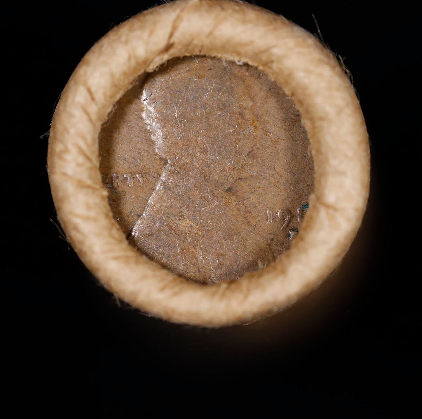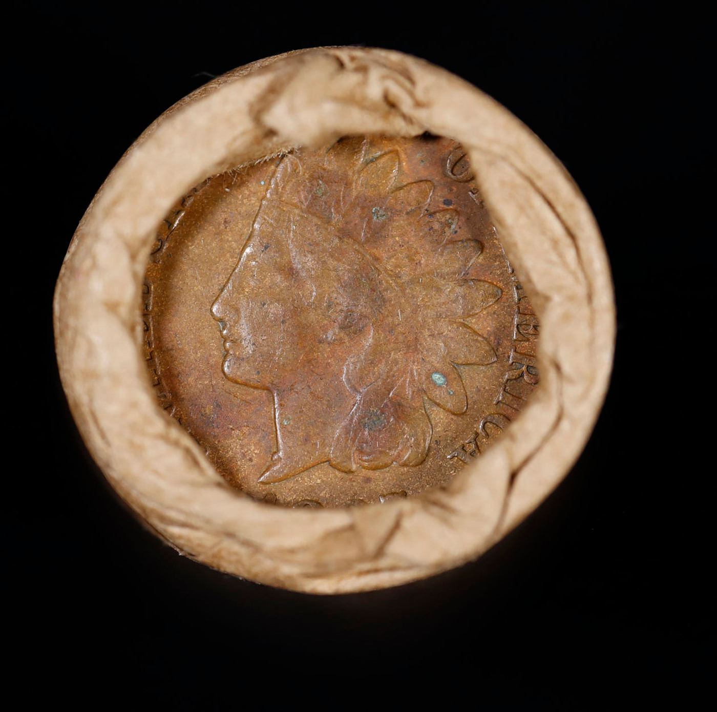 Mixed small cents 1c orig shotgun roll, 1916-D Wheat Cent, 1887 Indian Cent other end, Brinks Wrappe