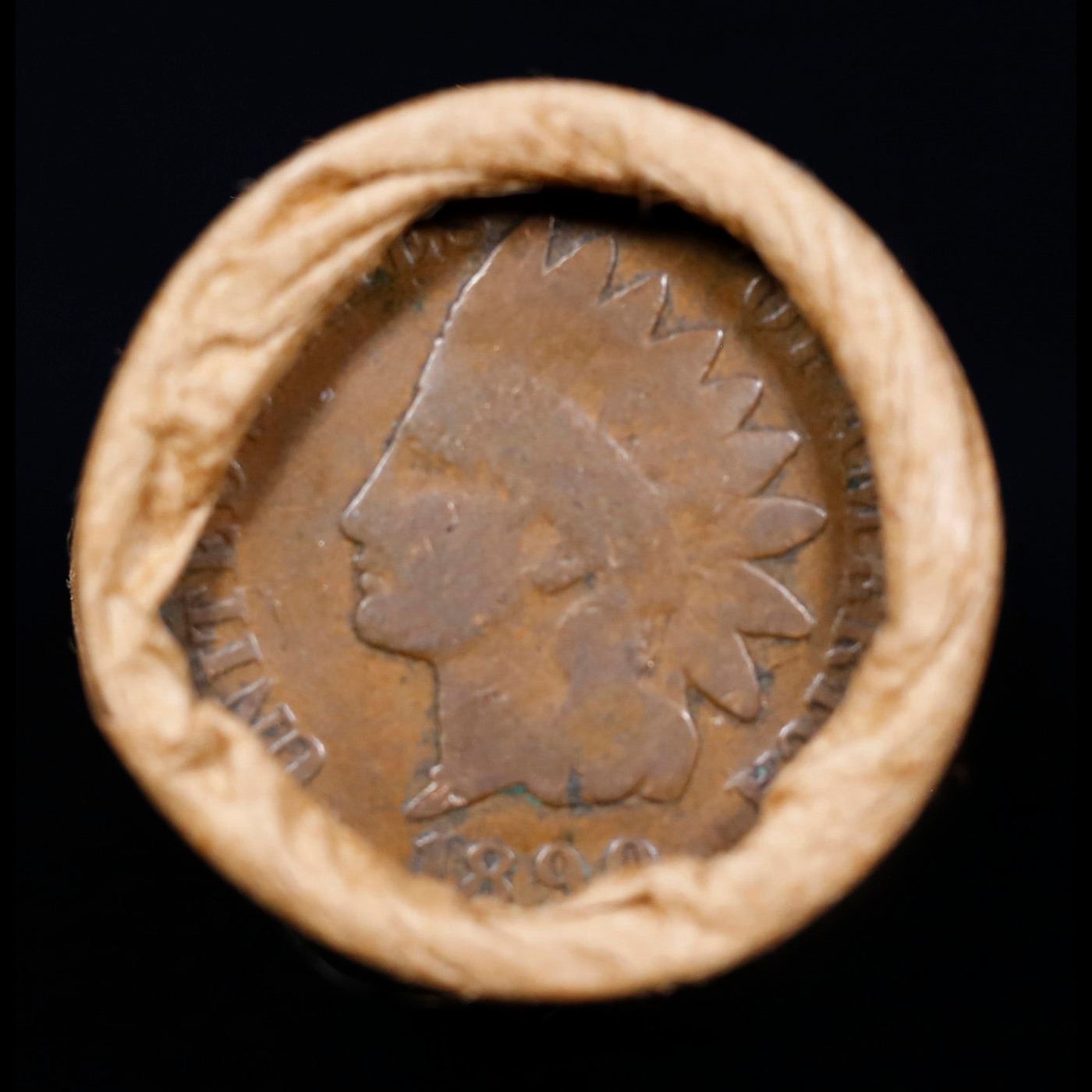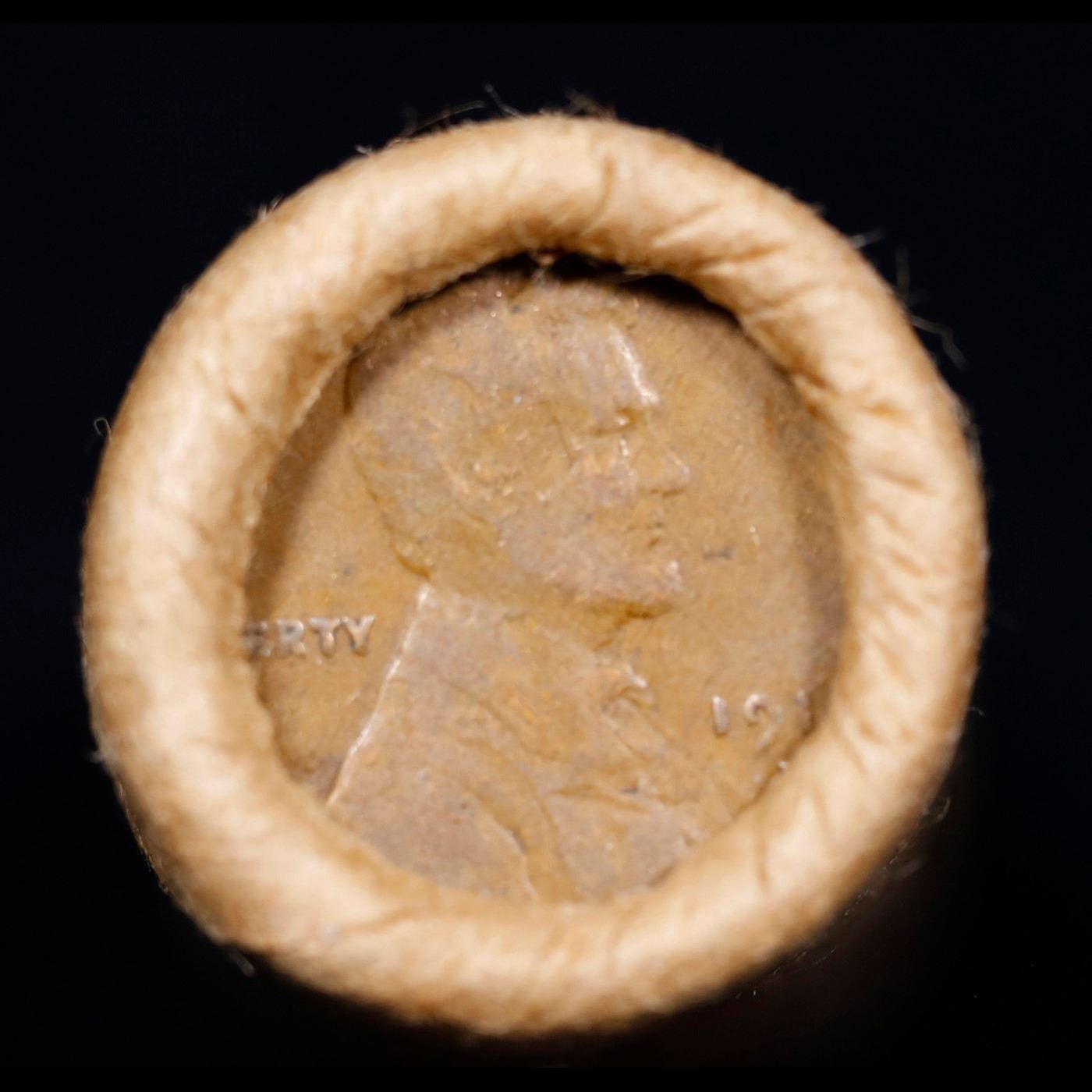 Mixed small cents 1c orig shotgun roll, 1916-D Wheat Cent, 1890 Indian Cent other end, Brinks Wrappe