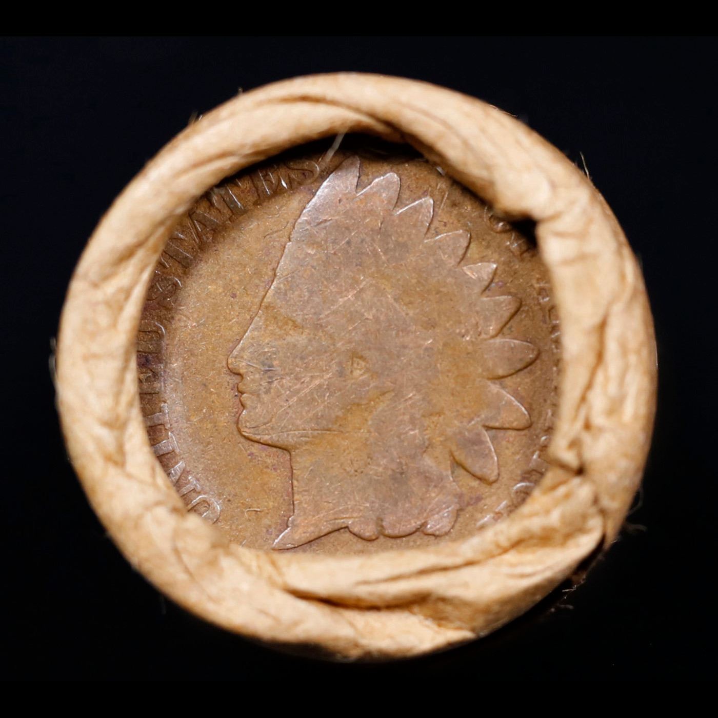 Mixed small cents 1c orig shotgun roll, 1916-D Wheat Cent, 1896 Indian Cent other end, Brinks Wrappe