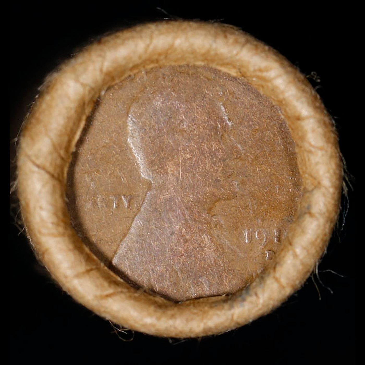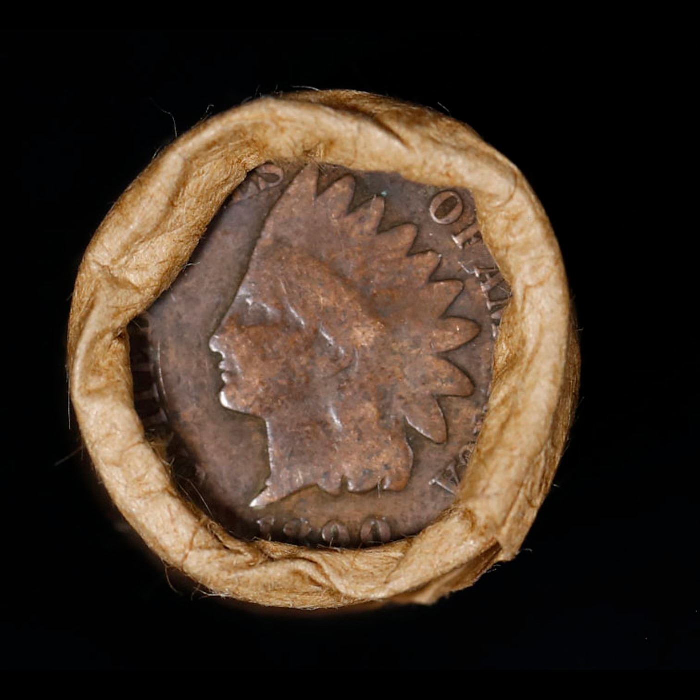 Mixed small cents 1c orig shotgun roll, 1916-d Wheat Cent, 1890 Indian Cent other end, Brandt Wrappe