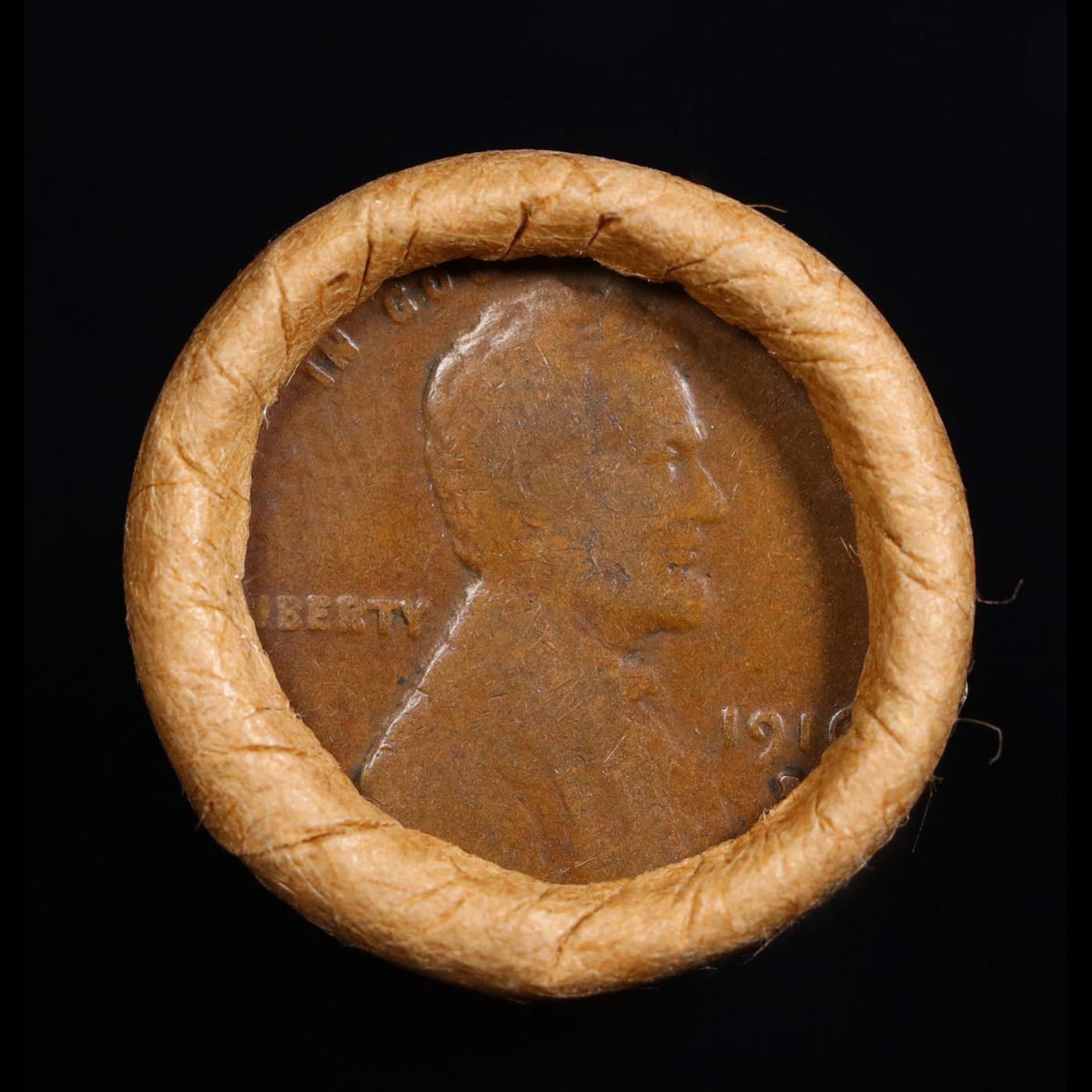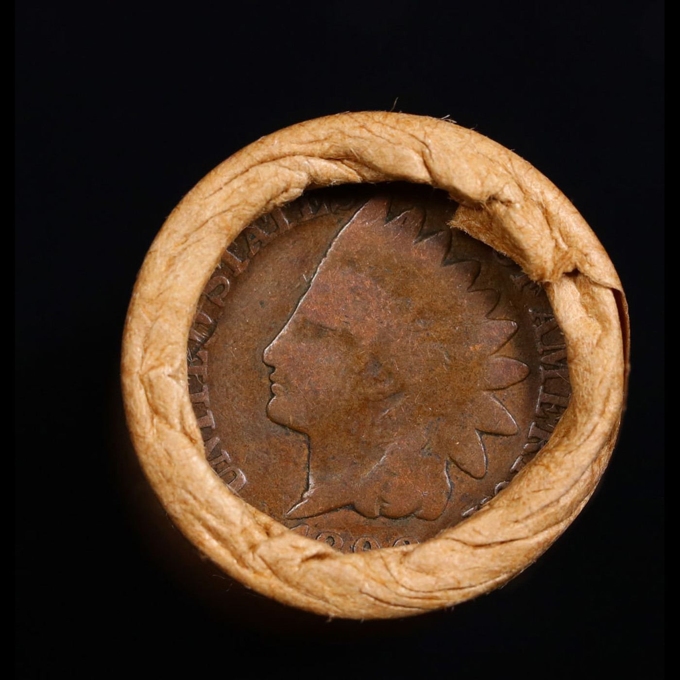 Mixed small cents 1c orig shotgun roll, 1916-d Wheat Cent, 1890 Indian Cent other end, Brinks Wrappe