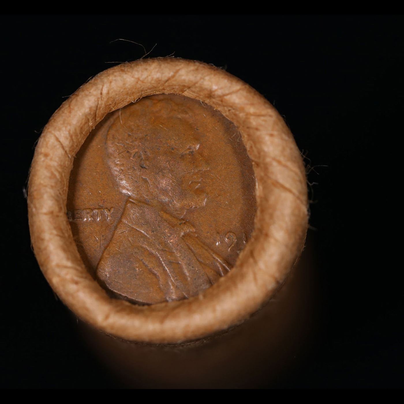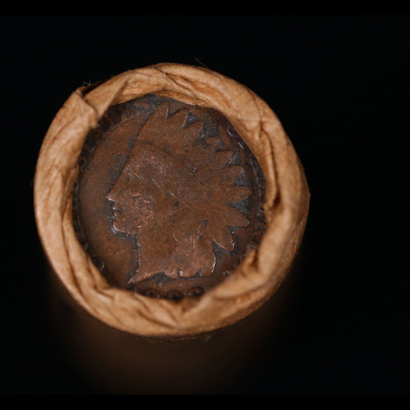 Mixed small cents 1c orig shotgun roll, 1916-d Wheat Cent, 1893 Indian Cent other end, Brinks Wrappe