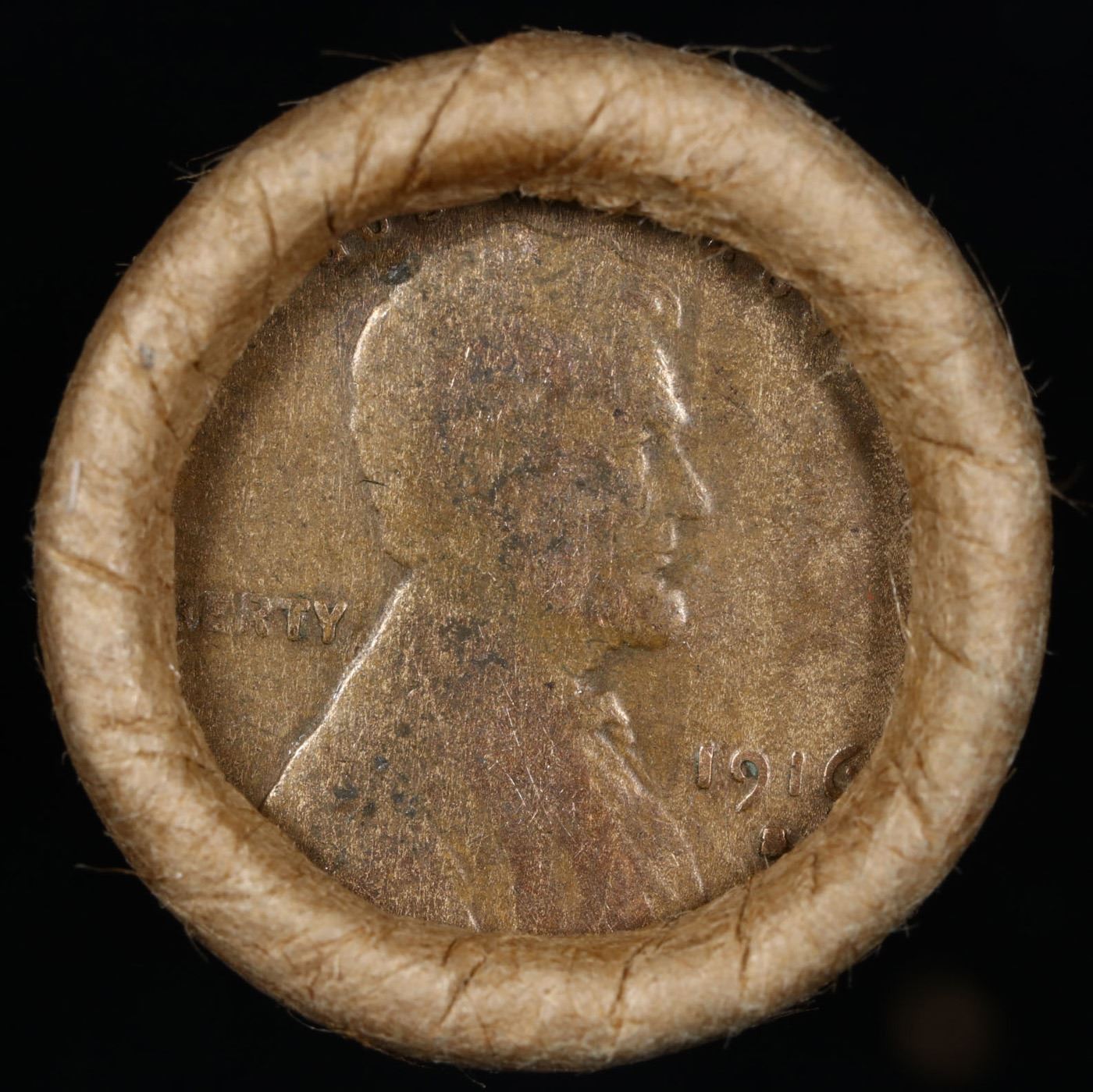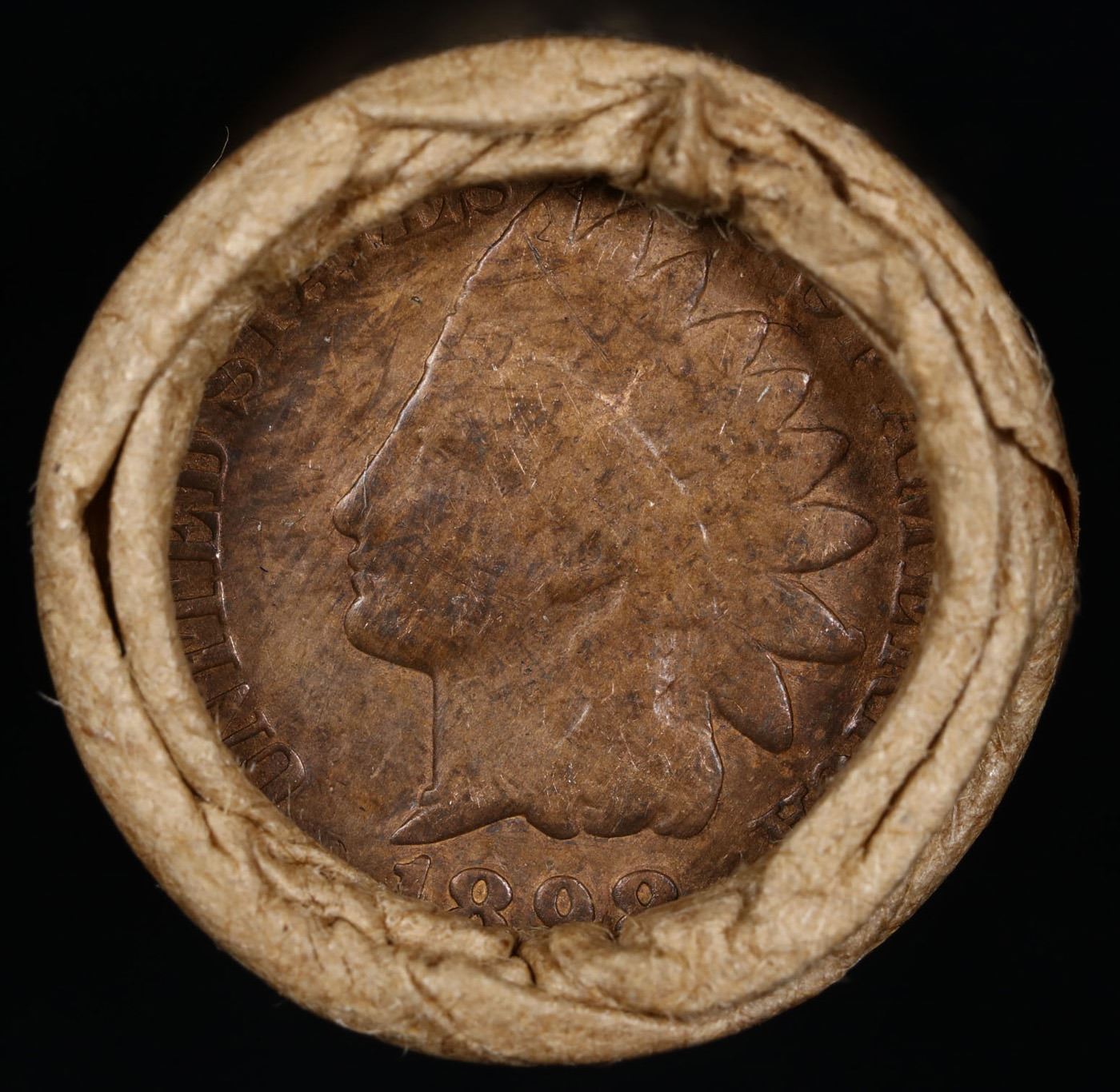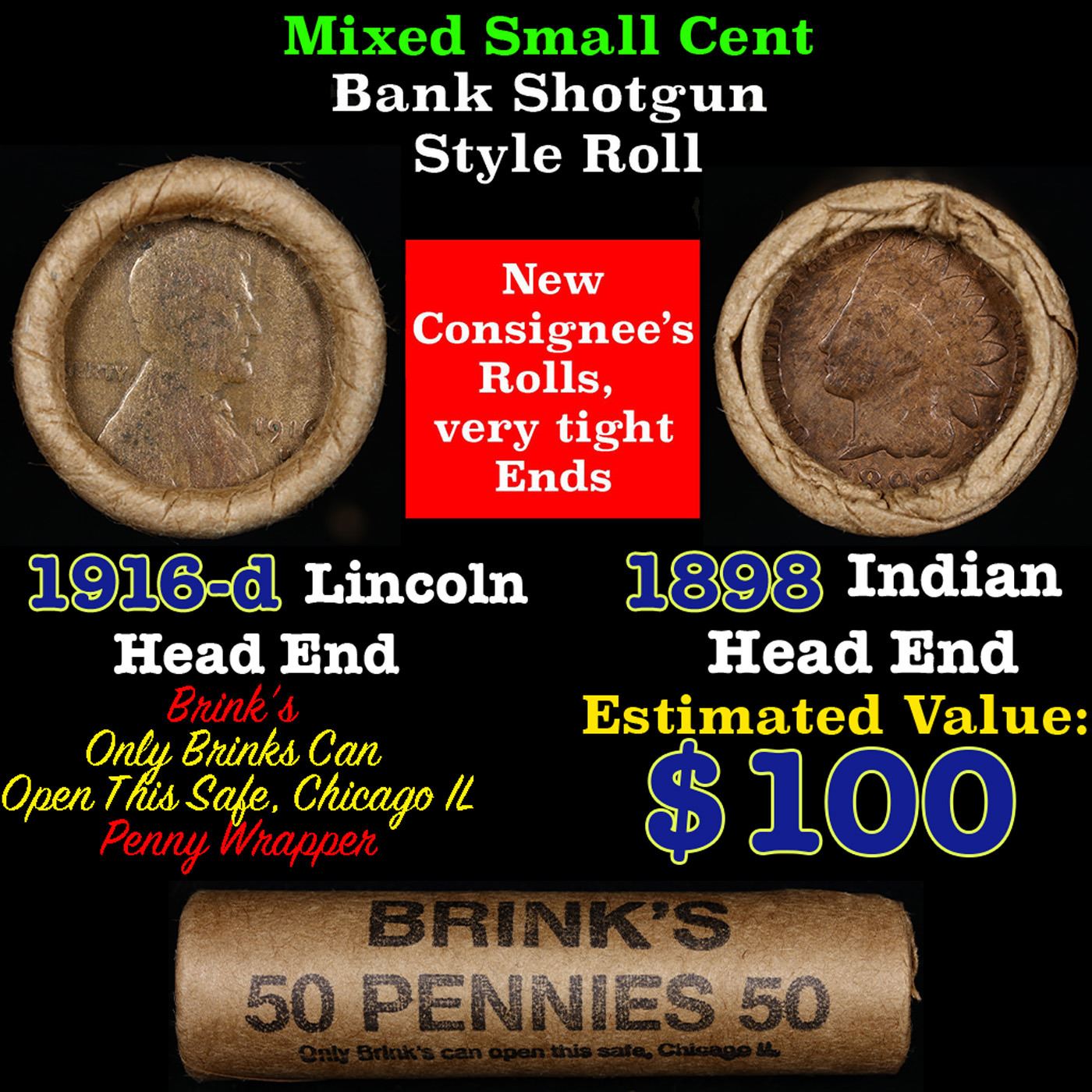 Mixed small cents 1c orig shotgun roll, 1916-d Wheat Cent, 1898 Indian Cent other end, brinks Wrappe