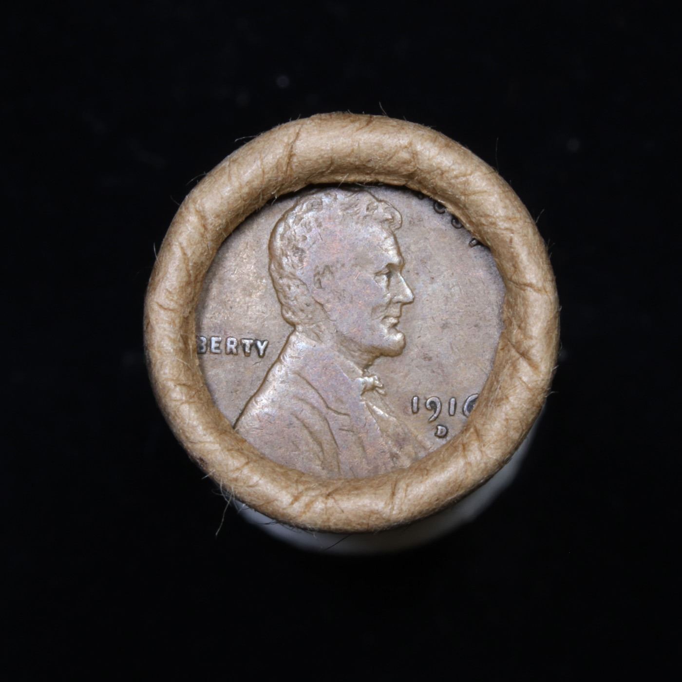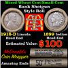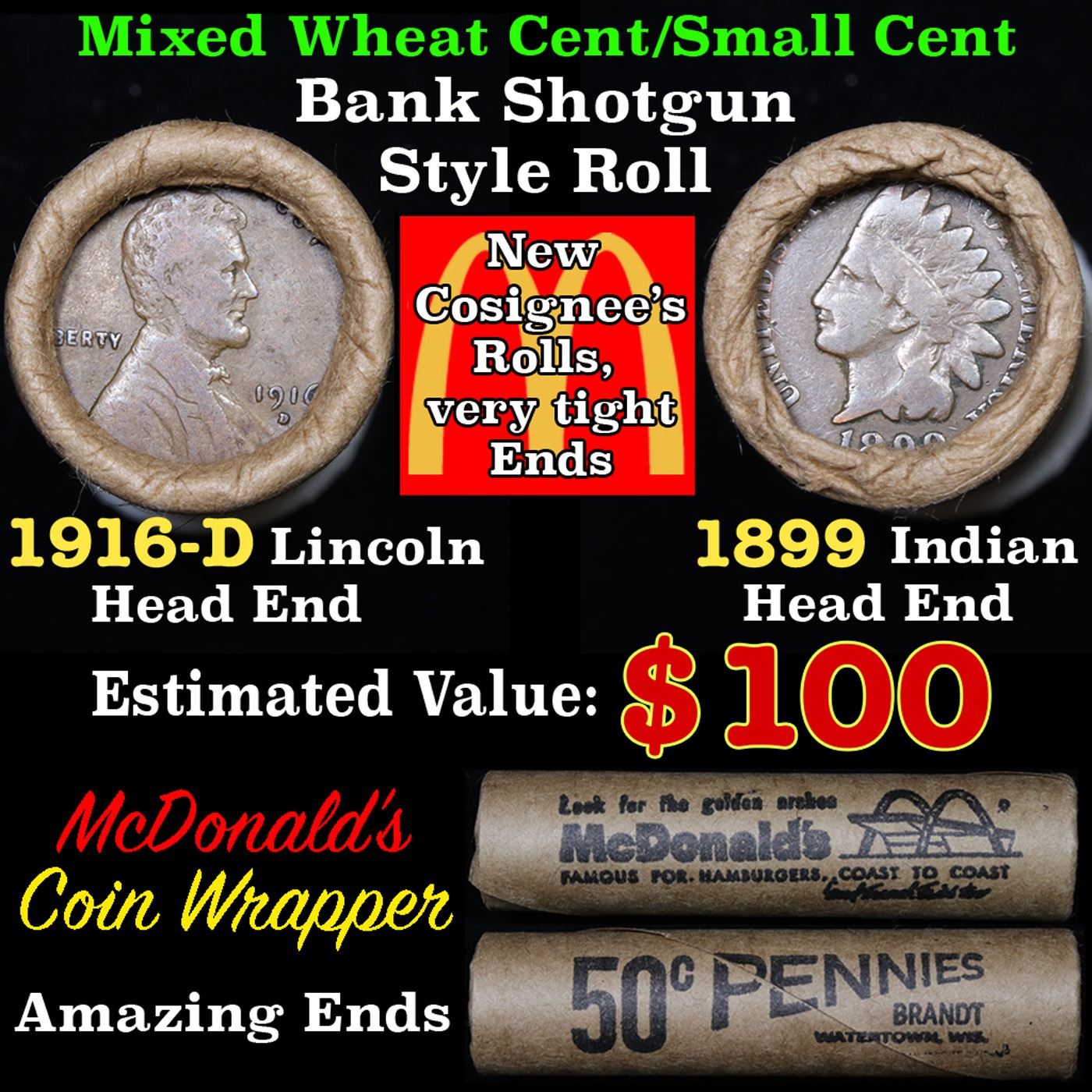 Mixed small cents 1c orig shotgun roll, 1916-d Wheat Cent, 1899 Indian Cent other end, McDonalds Wra