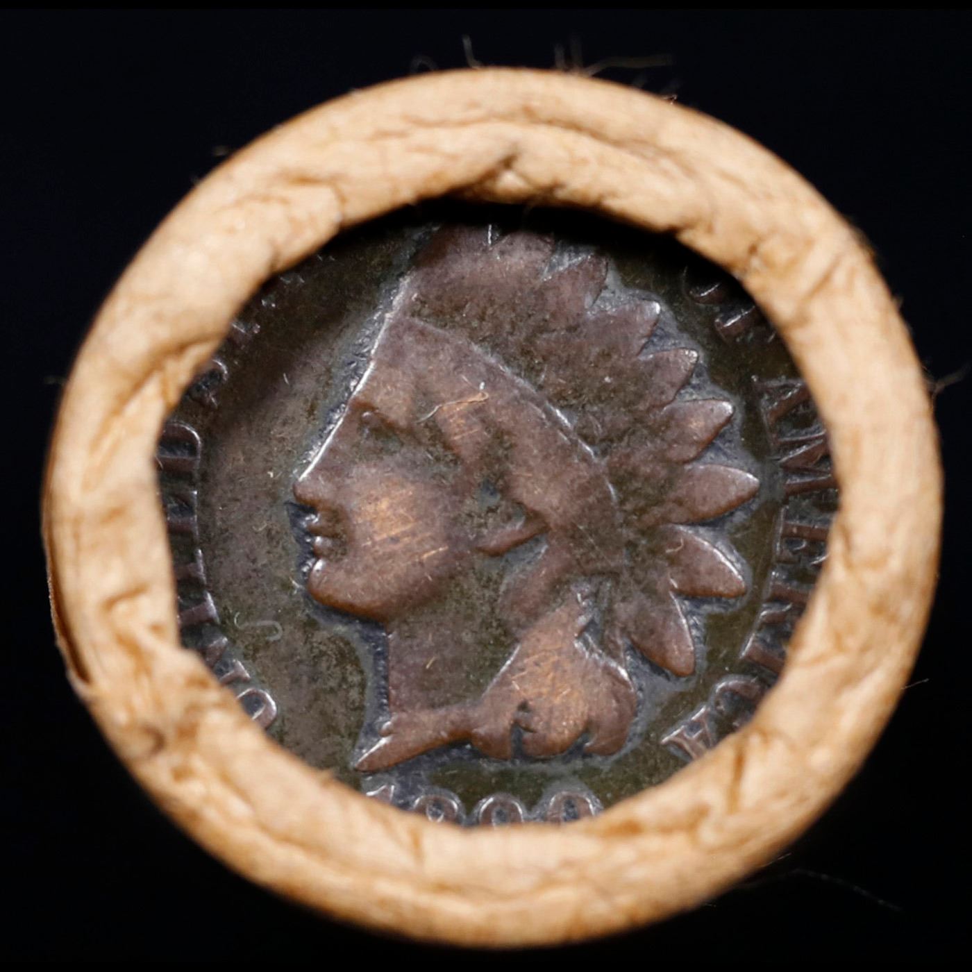Mixed small cents 1c orig shotgun roll, 1917-D Wheat Cent, 1890 Indian Cent other end, Brinks Wrappe