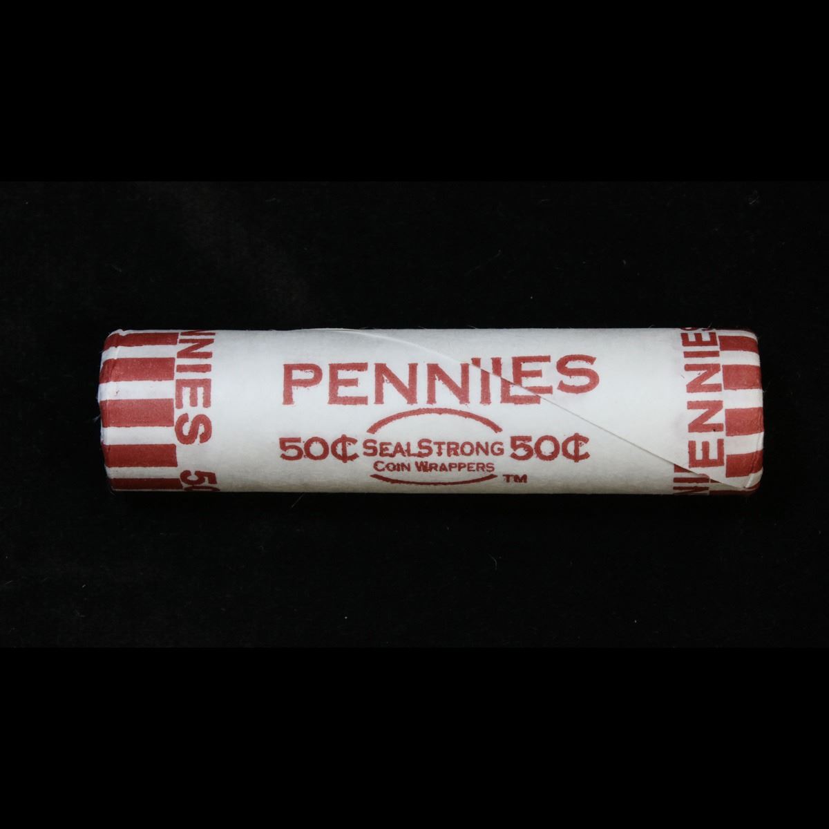 Mixed small cents 1c orig shotgun roll, 1917-d Wheat Cent, 1858 Indian Cent other end, N.F. String & Son Wrapper. A terrific orig shotgun roll of Lincoln and Indian pennies. This is in an N.F. String & Son Inc wrapper.