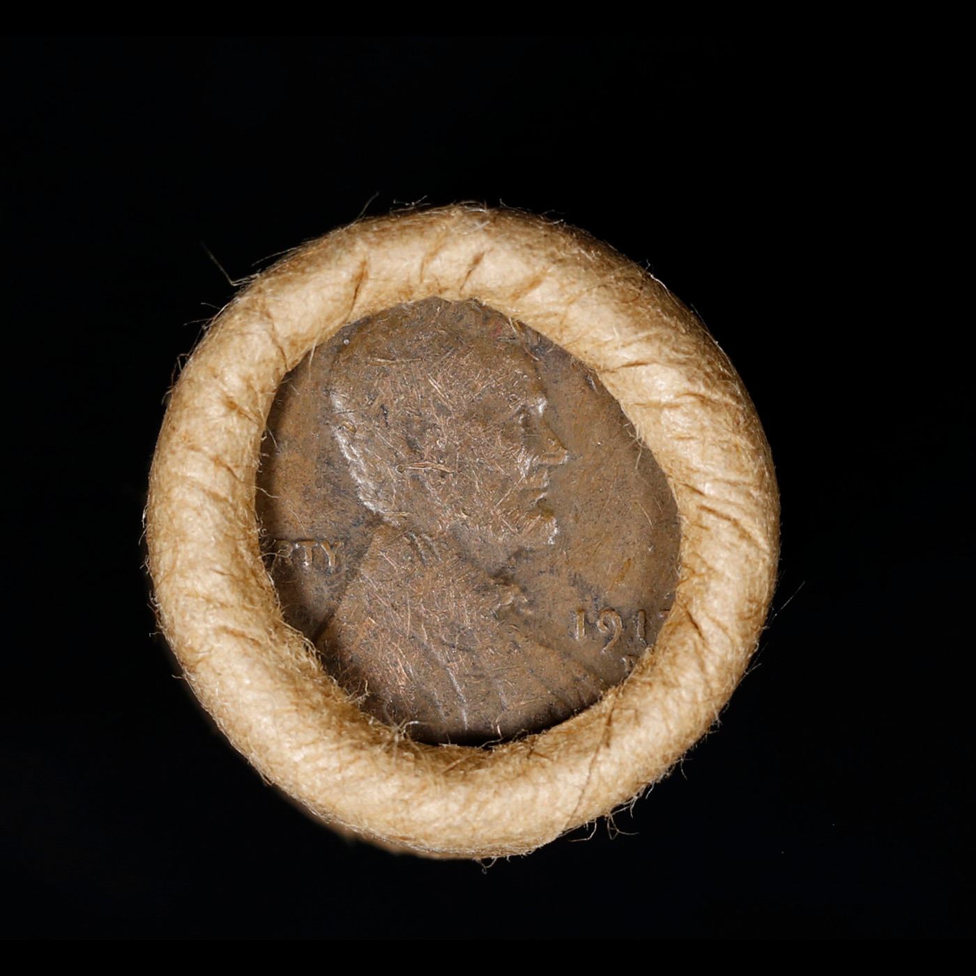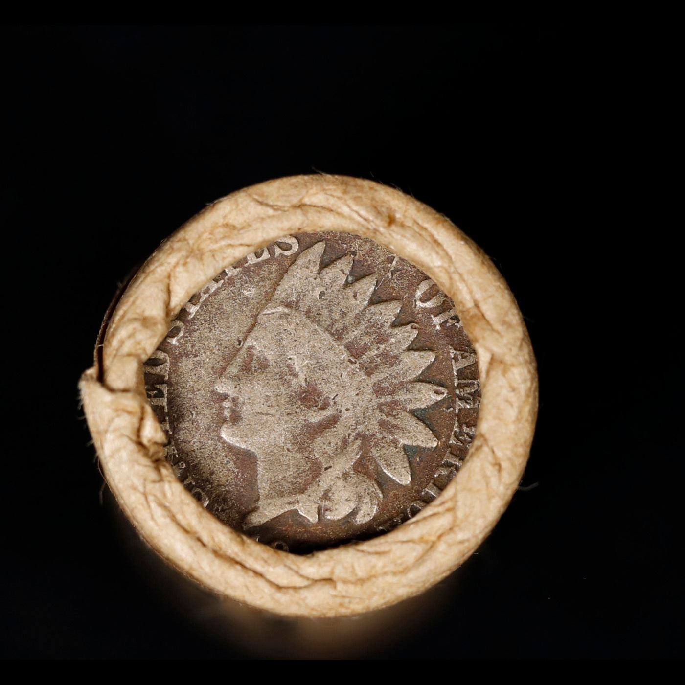 Mixed small cents 1c orig shotgun roll, 1917-d Wheat Cent, 1863 Indian Cent other end, Brinks Wrappe