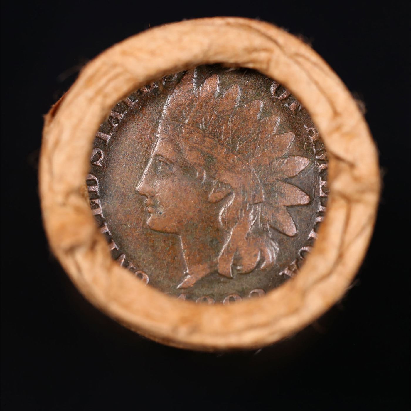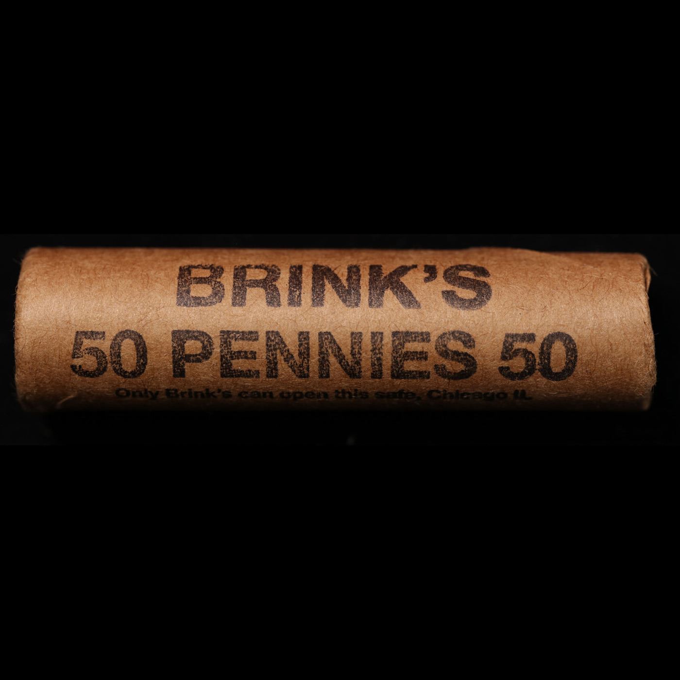 Mixed small cents 1c orig shotgun roll, 1917-d Wheat Cent, 1883 Indian Cent other end, Brinks Wrappe
