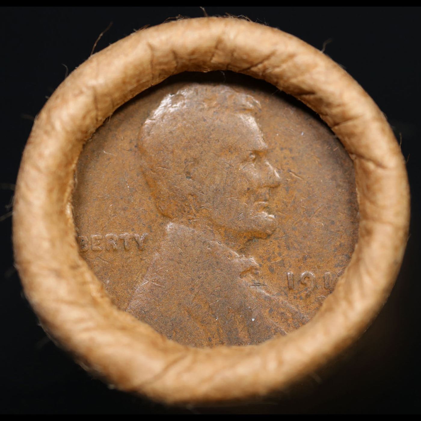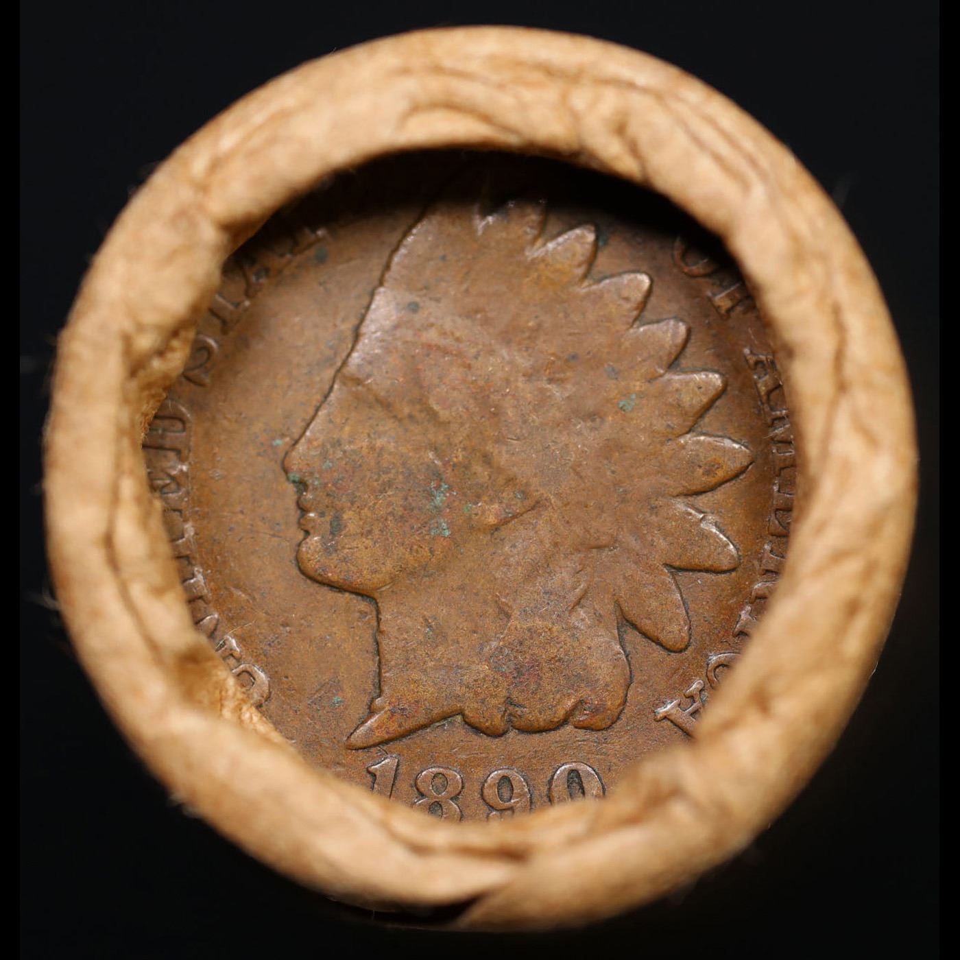 Mixed small cents 1c orig shotgun roll, 1917-d Wheat Cent, 1890 Indian Cent other end, Brinks Wrappe