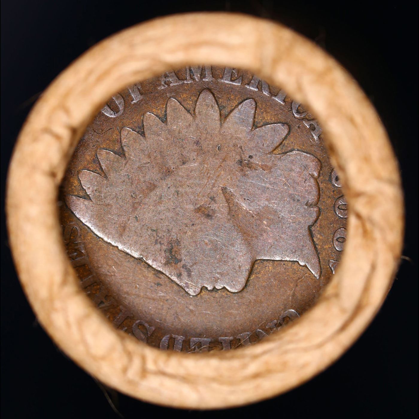 Mixed small cents 1c orig shotgun roll, 1917-d Wheat Cent, 1892 Indian Cent other end, brinks Wrappe