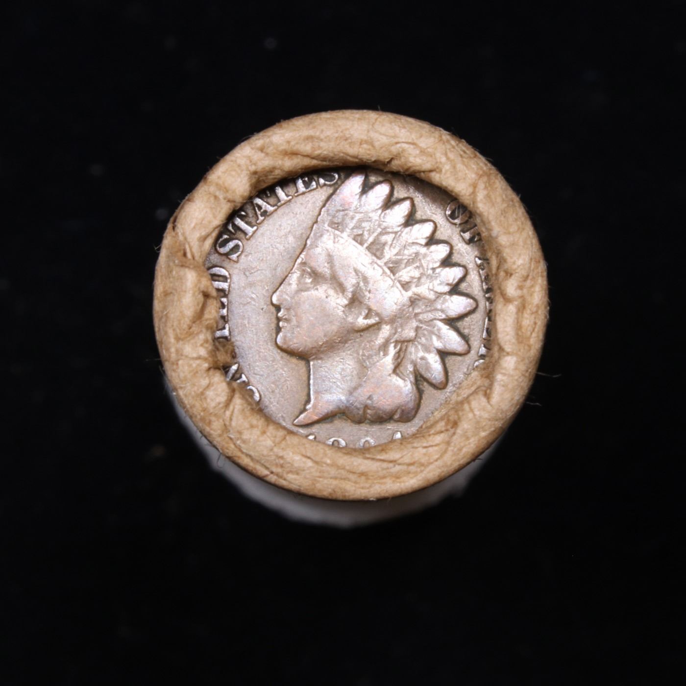 Mixed small cents 1c orig shotgun roll, 1917-d Wheat Cent, 1894 Indian Cent other end, McDonalds Wra