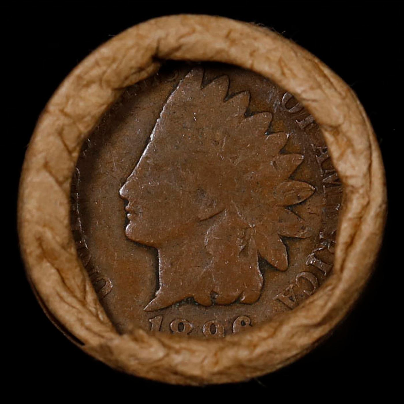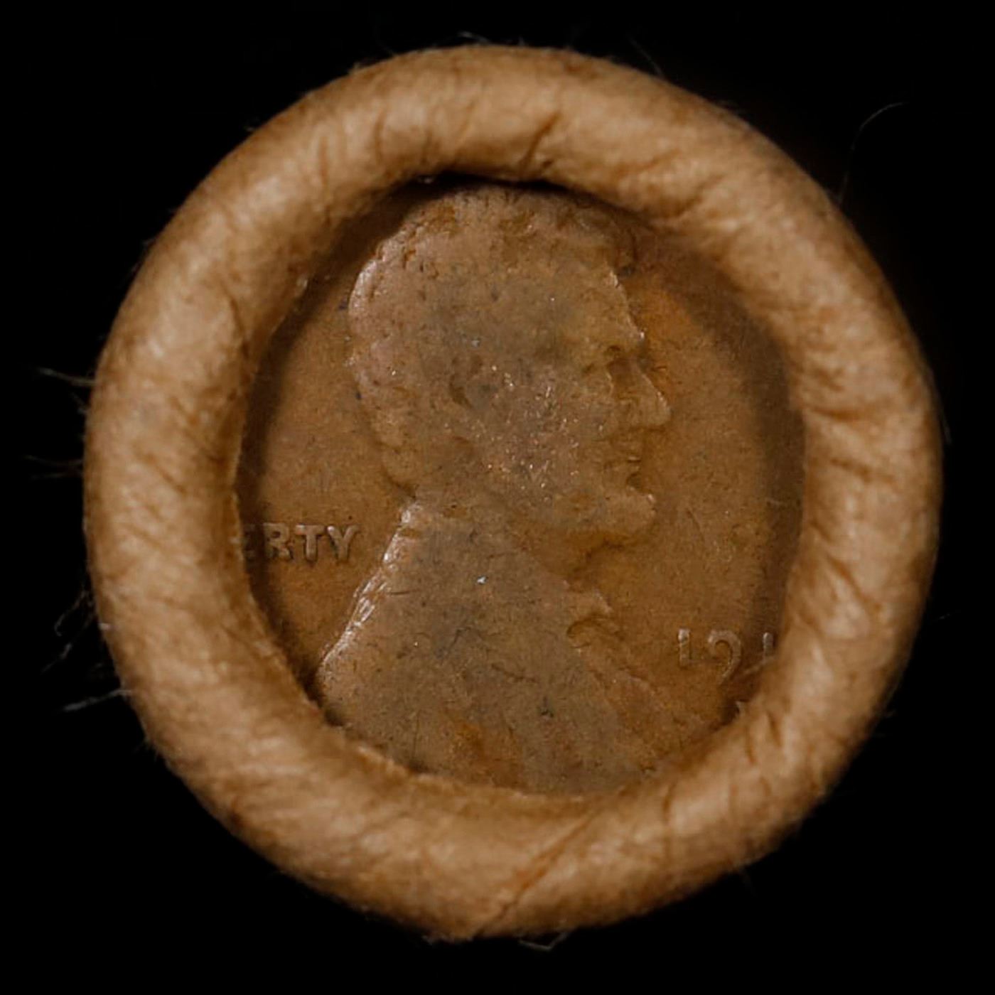Mixed small cents 1c orig shotgun roll, 1917-d Wheat Cent, 1896 Indian Cent other end, Brinks Wrappe