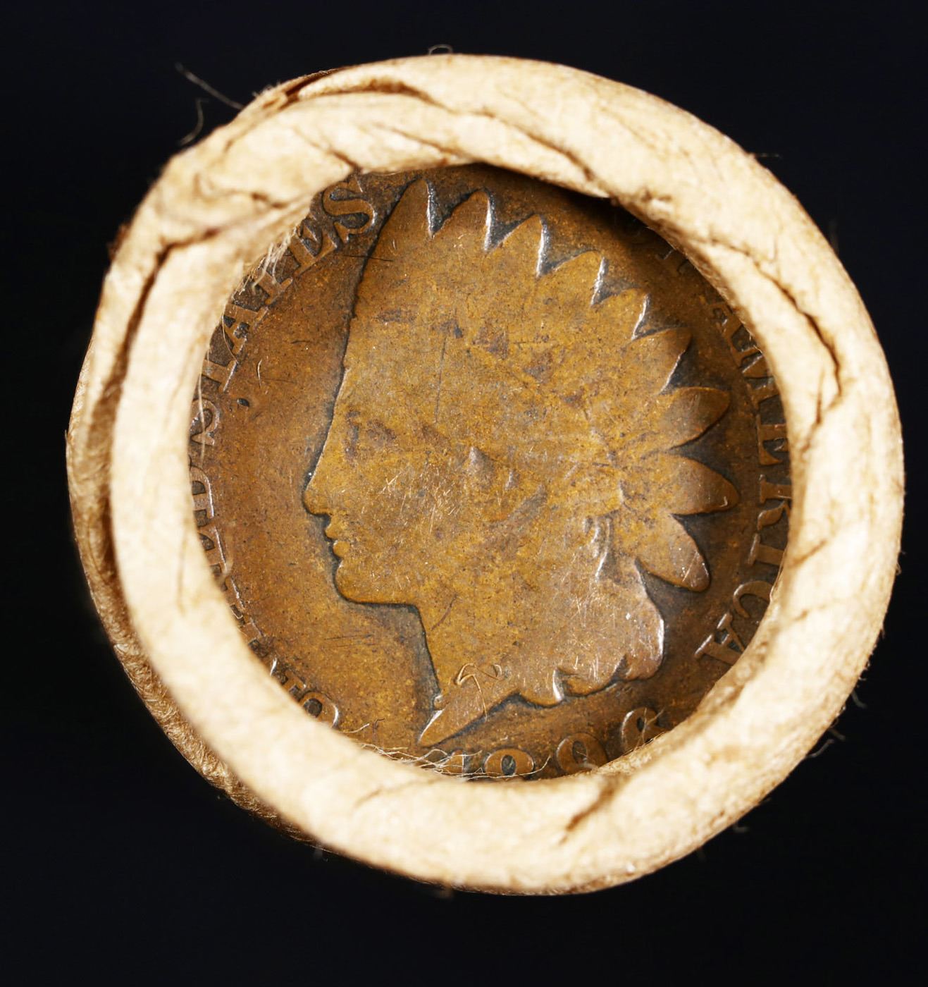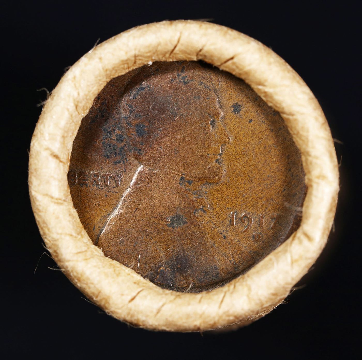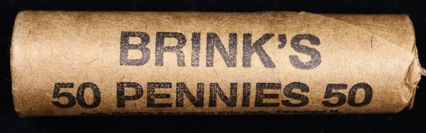 Mixed small cents 1c orig shotgun roll, 1917-d Wheat Cent, 1896 Indian Cent other end, brinks Wrappe