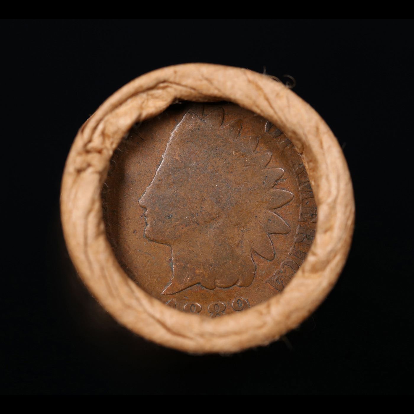 Mixed small cents 1c orig shotgun roll, 1917-d Wheat Cent, 1897 Indian Cent other end, Brinks Wrappe
