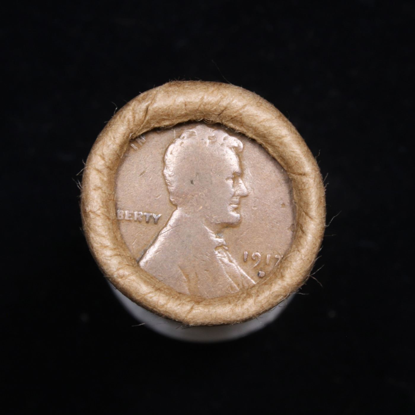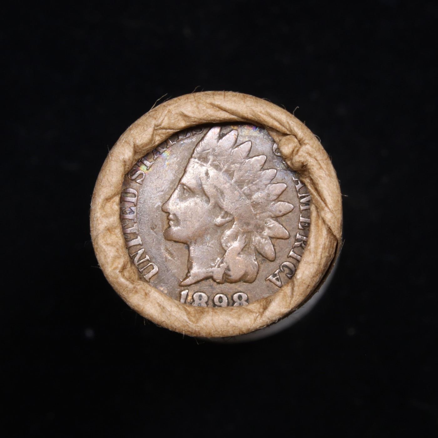 Mixed small cents 1c orig shotgun roll, 1917-d Wheat Cent, 1898 Indian Cent other end, McDnalds Wrap