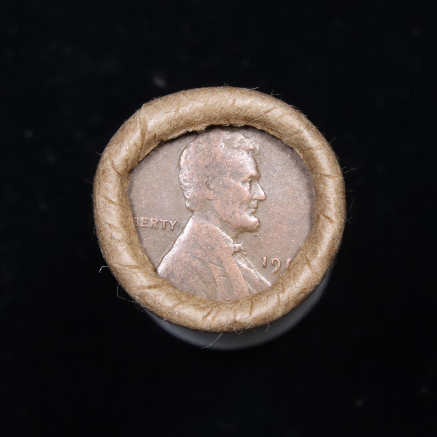 Mixed small cents 1c orig shotgun roll, 1917-d Wheat Cent, 1898 Indian Cent other end,McDnalds Wrapp