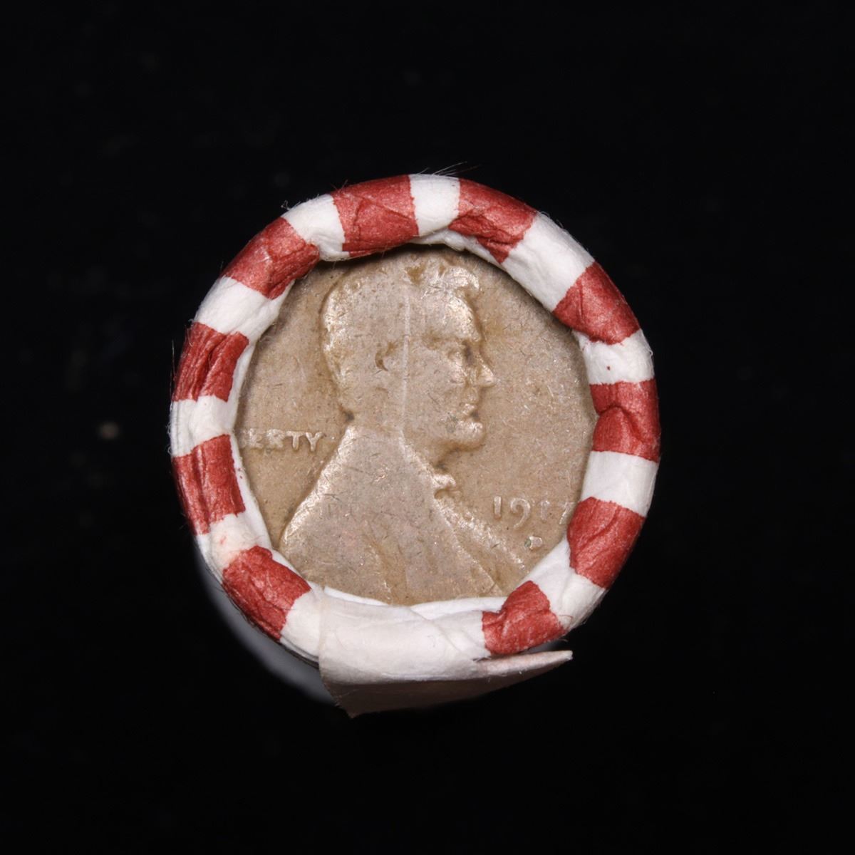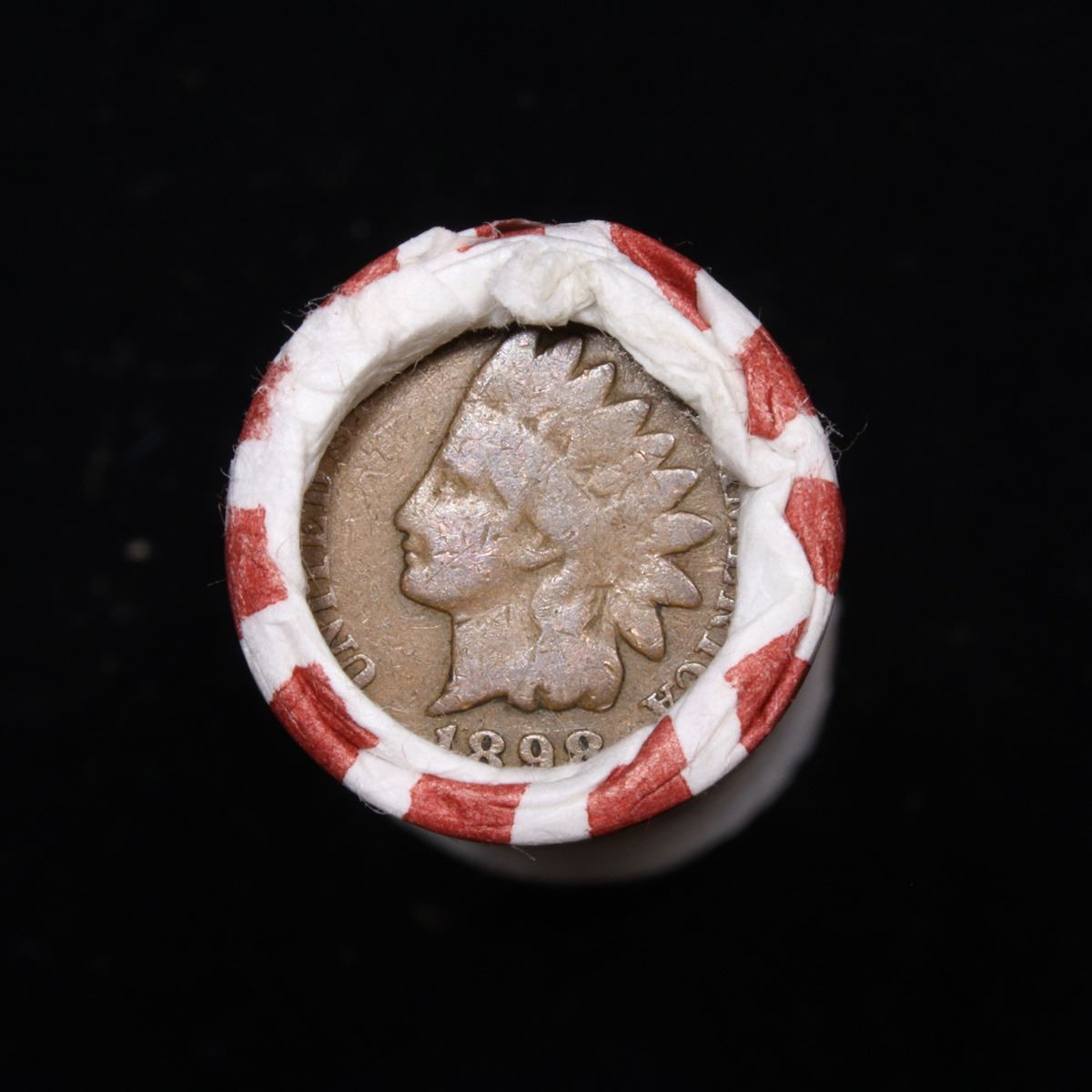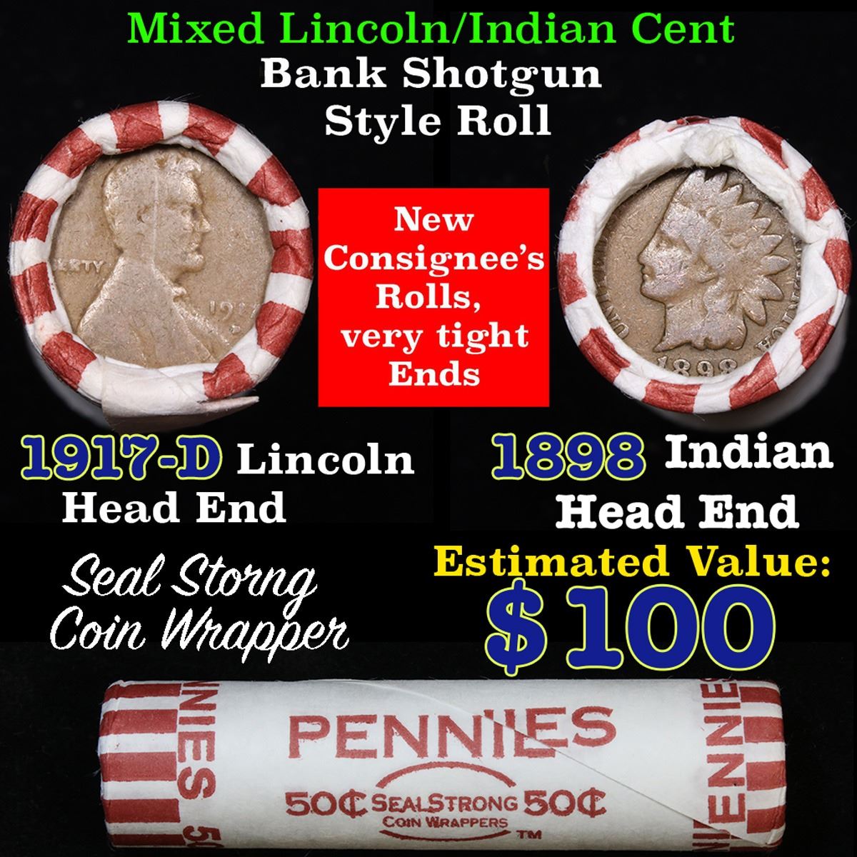 Mixed small cents 1c orig shotgun roll, 1917-d Wheat Cent, 1898 Indian Cent other end, N.F. String &