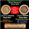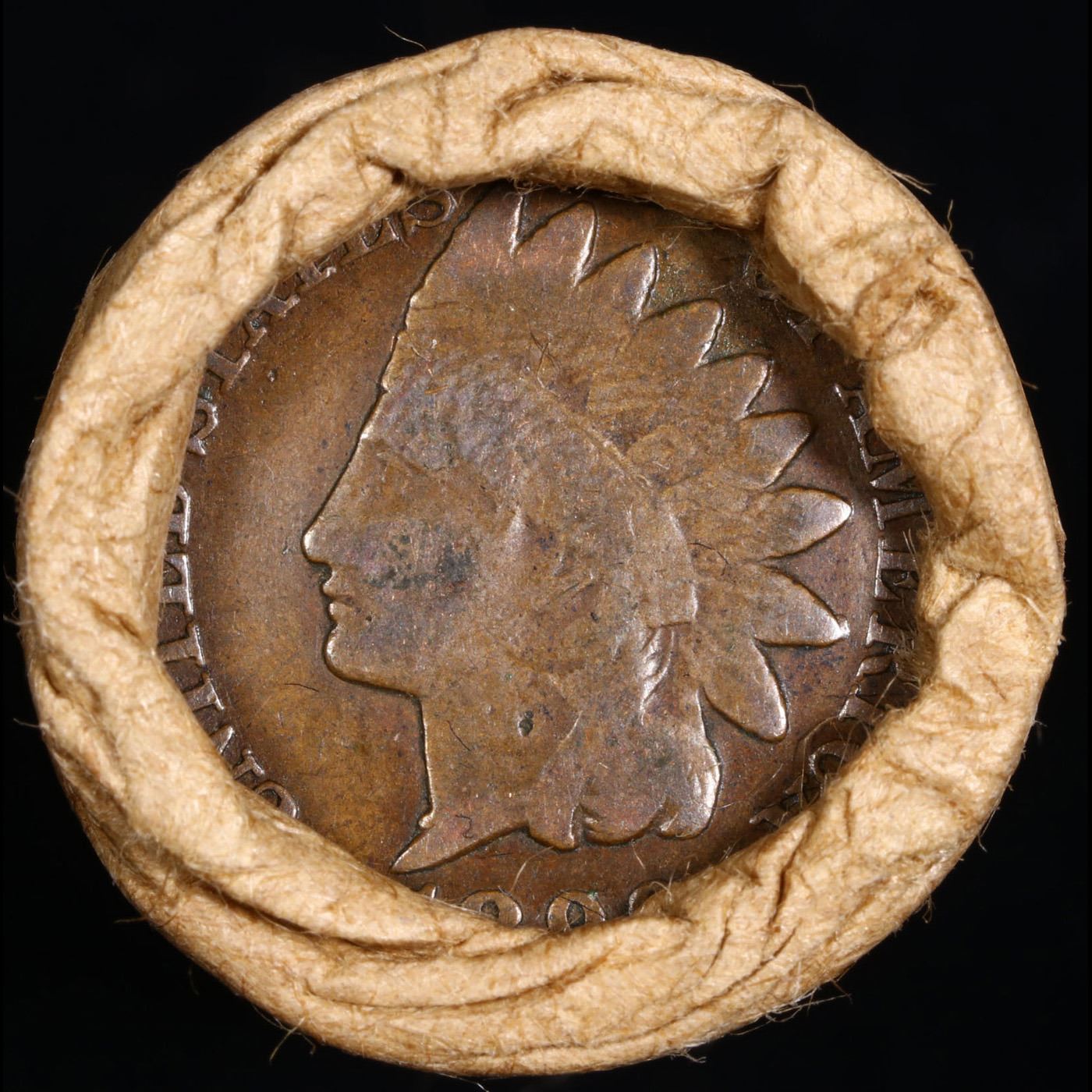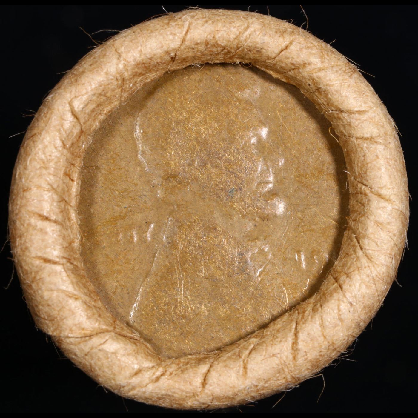 Mixed small cents 1c orig shotgun roll, 1917-d Wheat Cent, 1899 Indian Cent other end, Brinks Wrappe