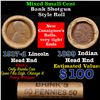 Mixed small cents 1c orig shotgun roll, 1917-d Wheat Cent, 1899 Indian Cent other end, Brinks Wrappe