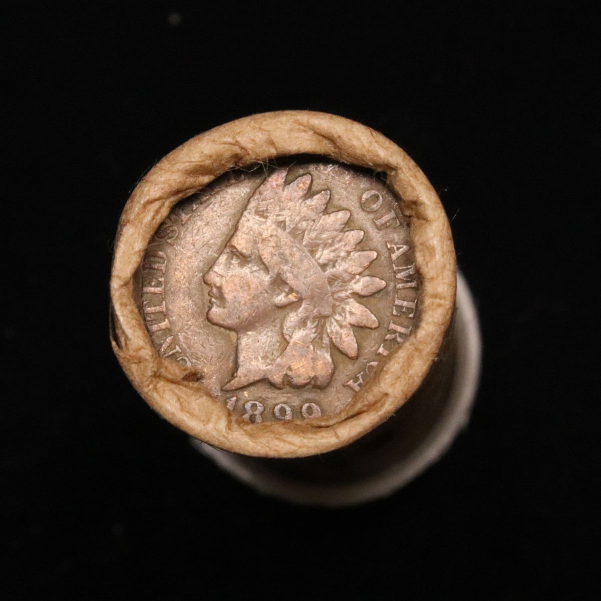 Mixed small cents 1c orig shotgun roll, 1917-d Wheat Cent, 1899 Indian Cent other end