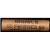 Mixed small cents 1c orig shotgun roll, 1917-s Wheat Cent, 1863 Indian Cent other end, Brinks Wrappe