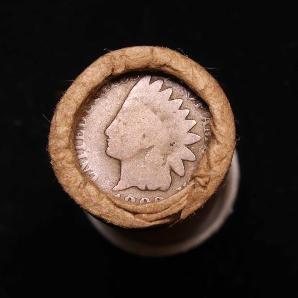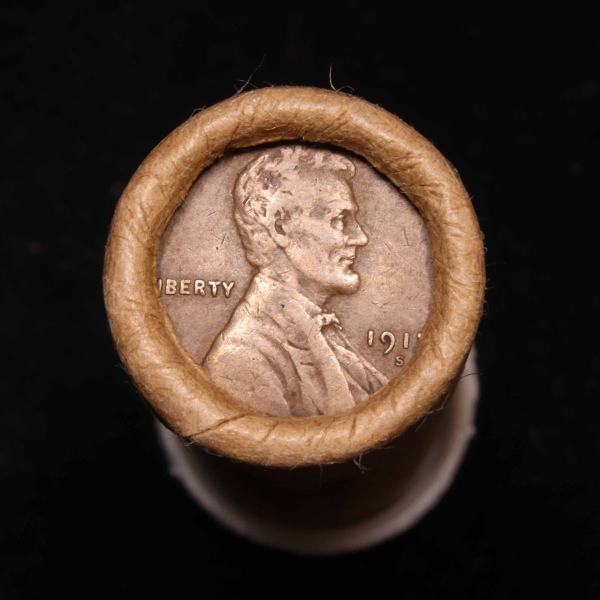 Mixed small cents 1c orig shotgun roll, 1917-s Wheat Cent, 1892 Indian Cent other end, McDonalds Wra