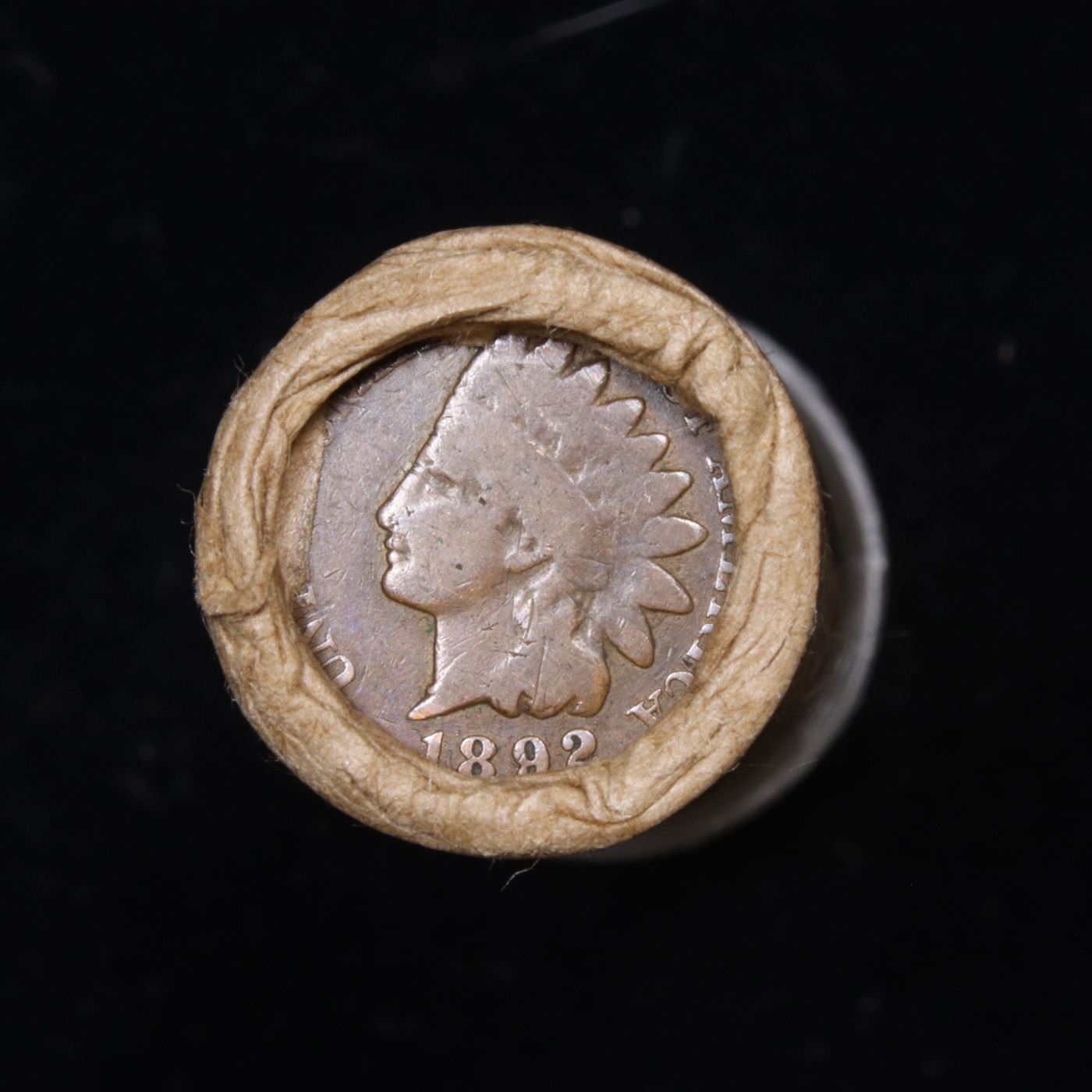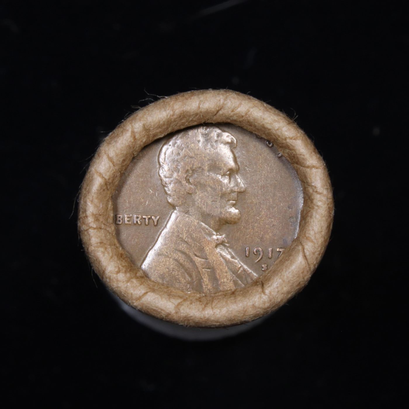 Mixed small cents 1c orig shotgun roll, 1917-s Wheat Cent, 1892 Indian Cent other end, McDonalds Wra