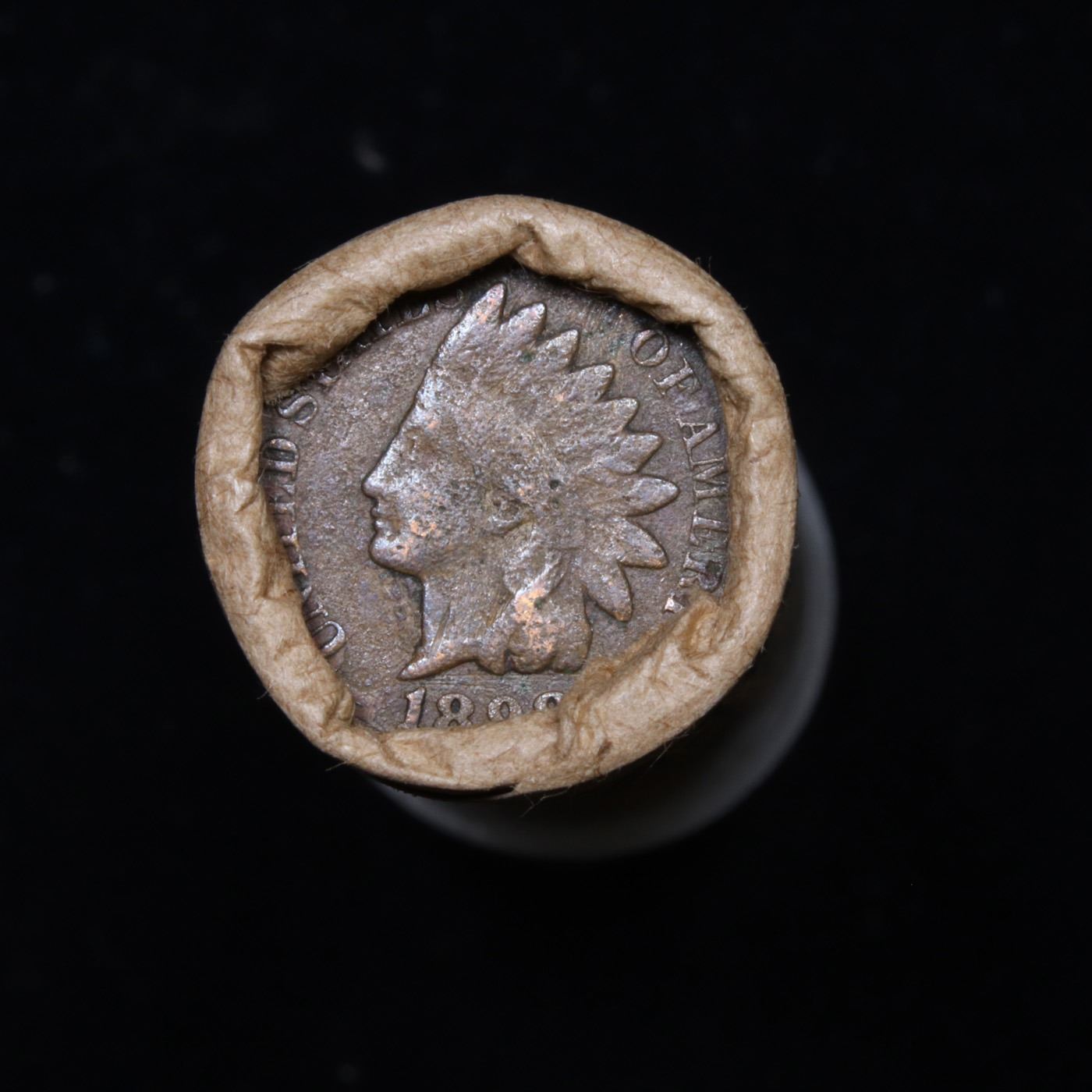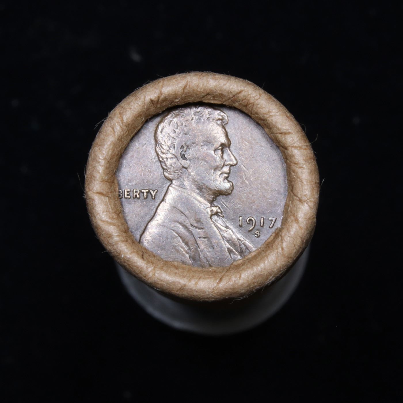 Mixed small cents 1c orig shotgun roll, 1917-s Wheat Cent, 1898 Indian Cent other end, McDnalds Wrap