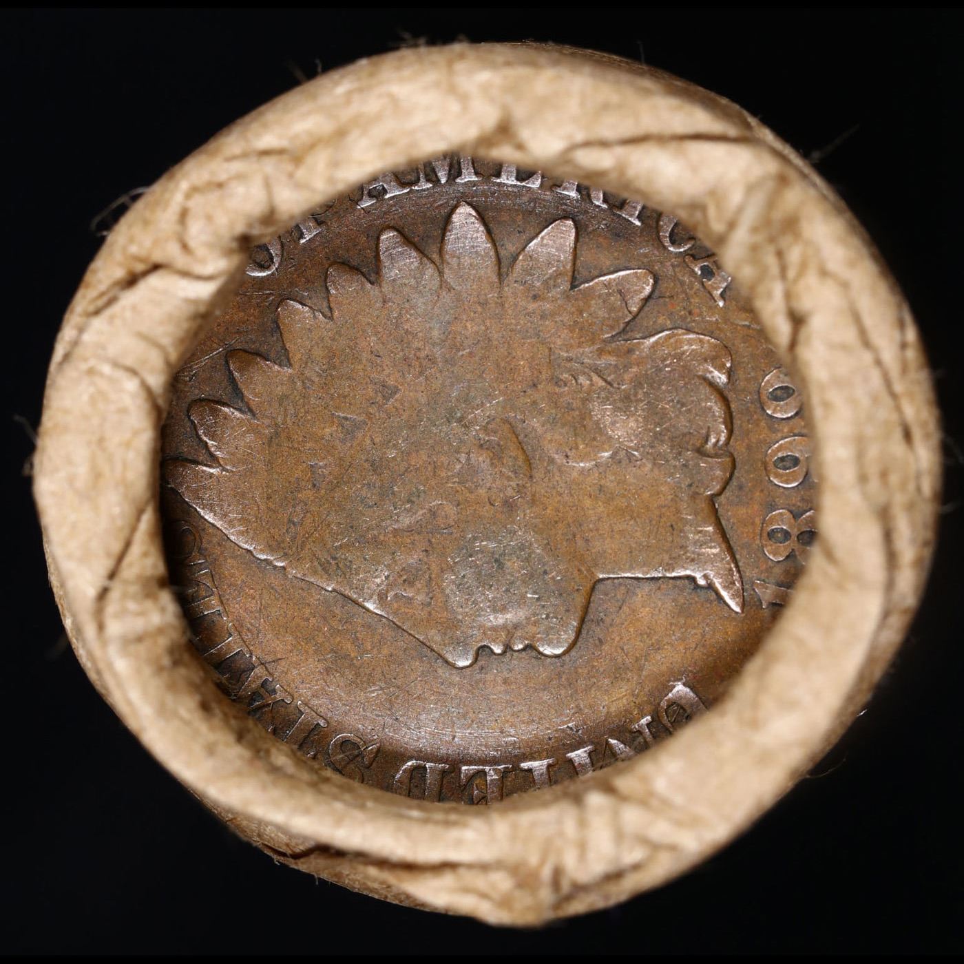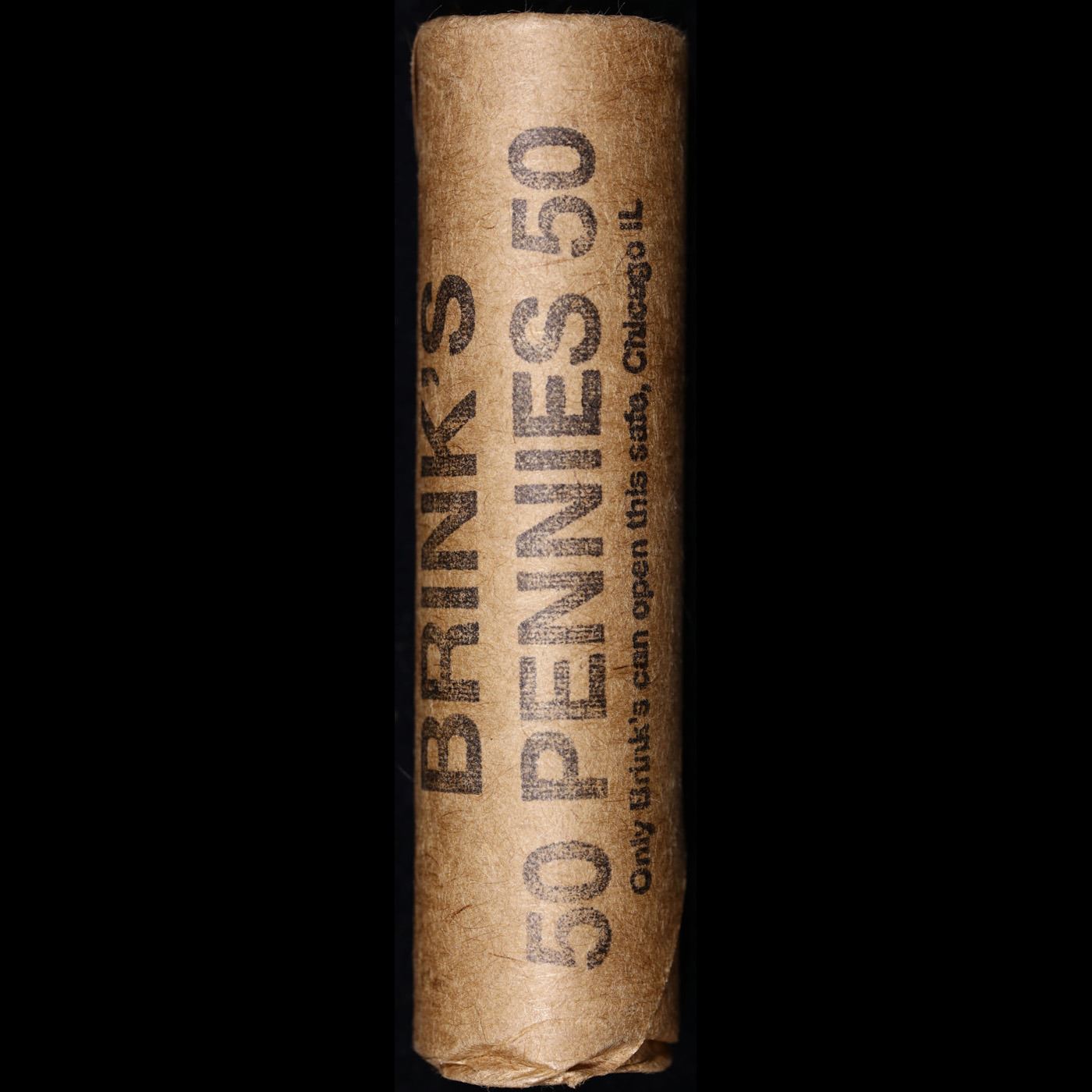 Mixed small cents 1c orig shotgun roll, 1917-s Wheat Cent, 1899 Indian Cent other end, Brinks Wrappe