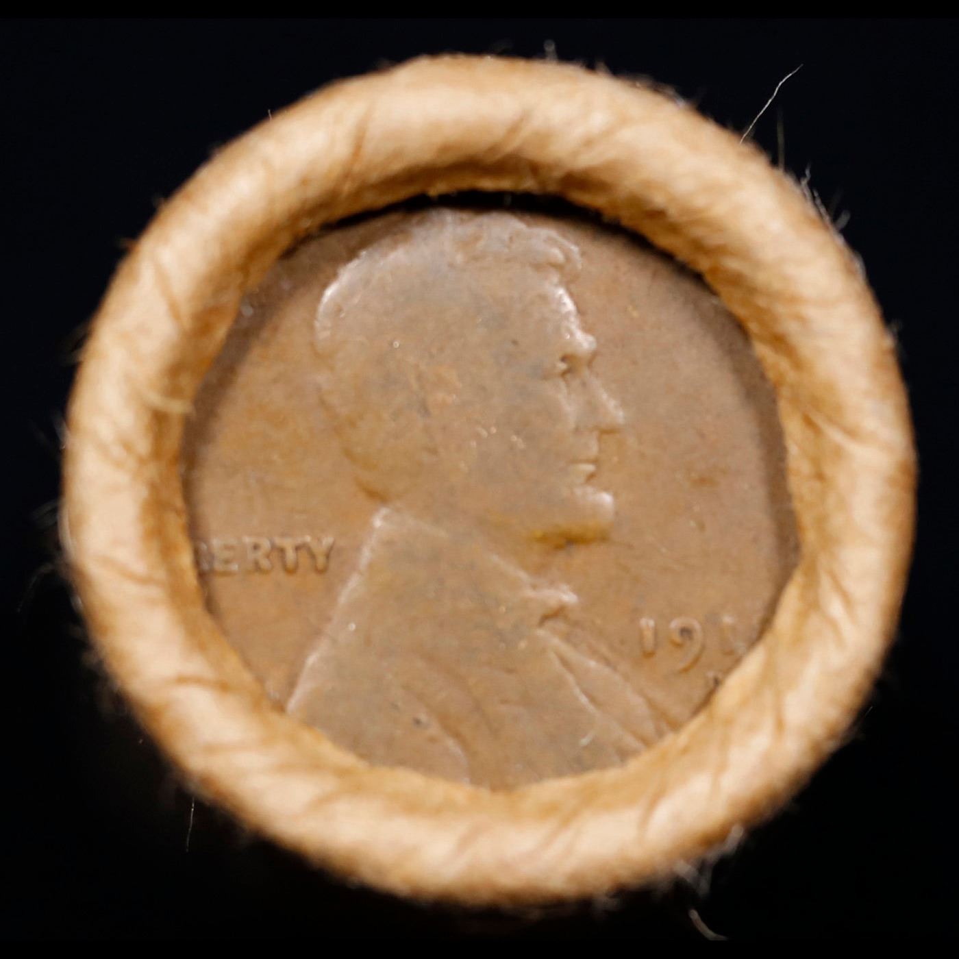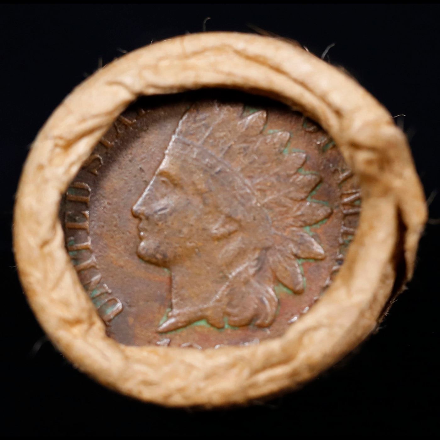 Mixed small cents 1c orig shotgun roll, 1918-D Wheat Cent, 1897 Indian Cent other end, Brinks Wrappe