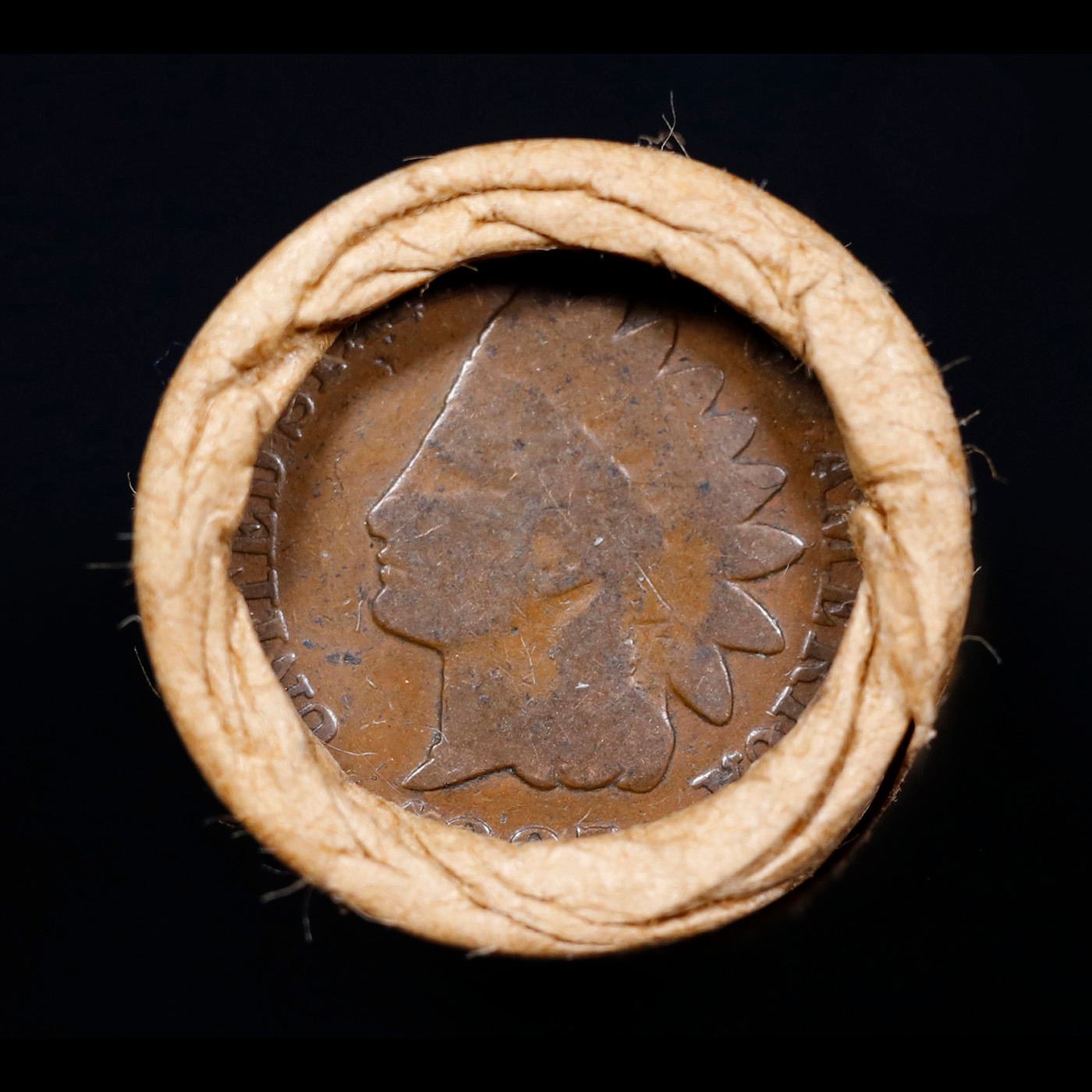 Mixed small cents 1c orig shotgun roll, 1918-S Wheat Cent, 1887 Indian Cent other end, Brinks Wrappe