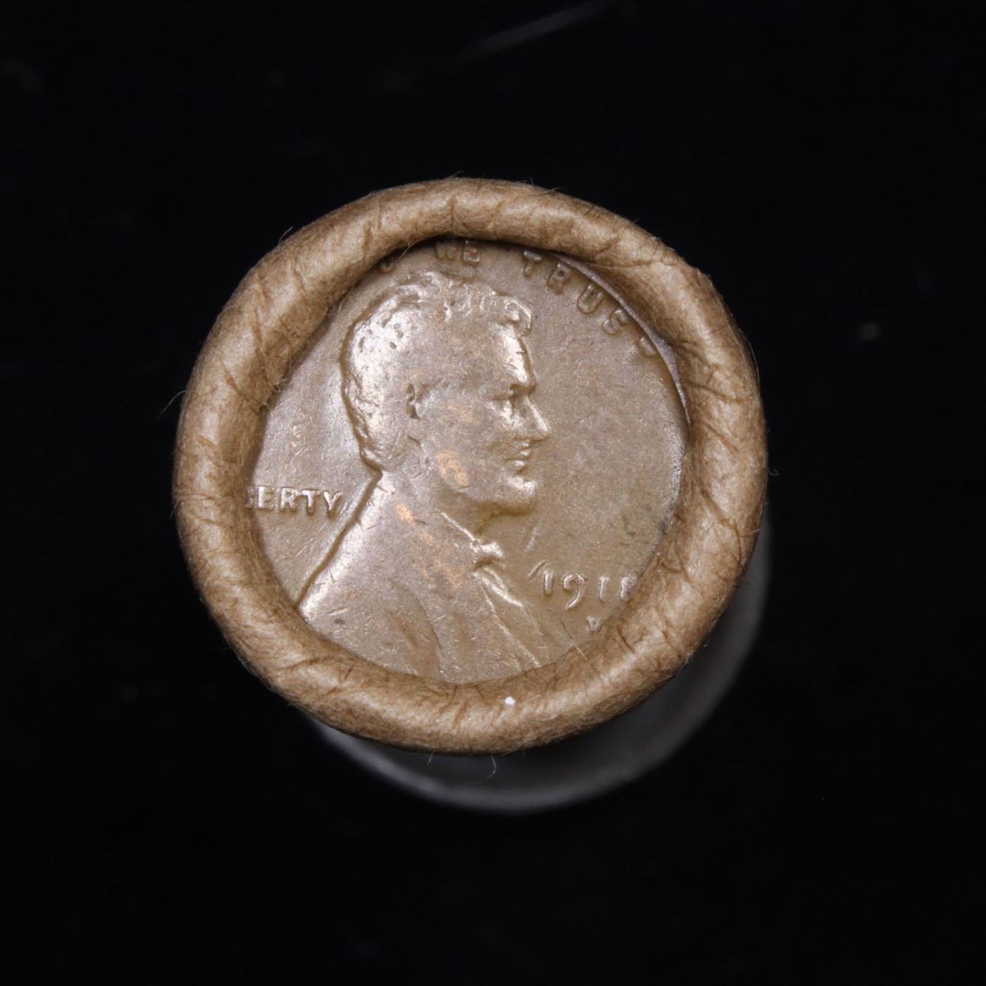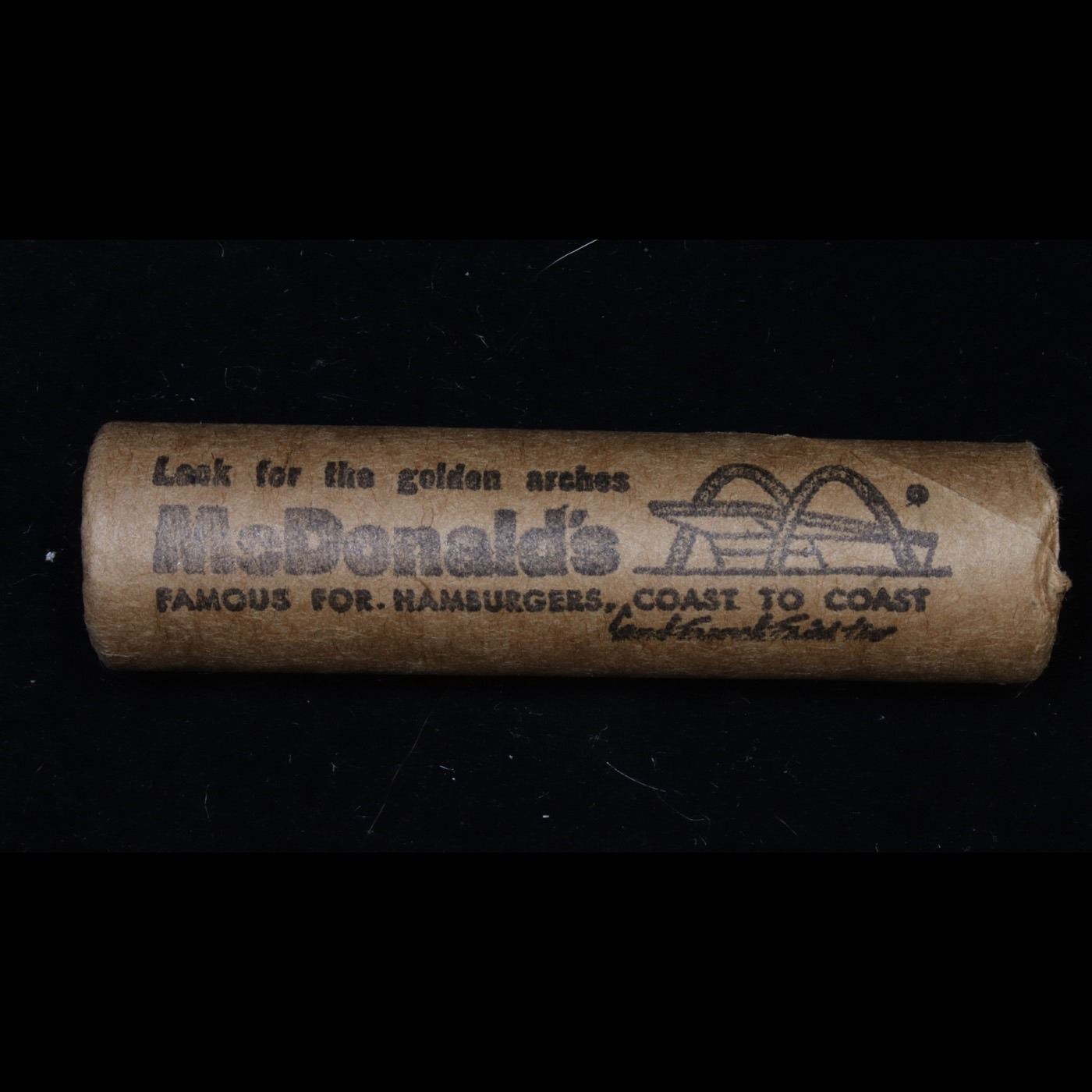 Mixed small cents 1c orig shotgun roll, 1918-d Wheat Cent, 1887 Indian Cent other end,McDnalds Wrapp