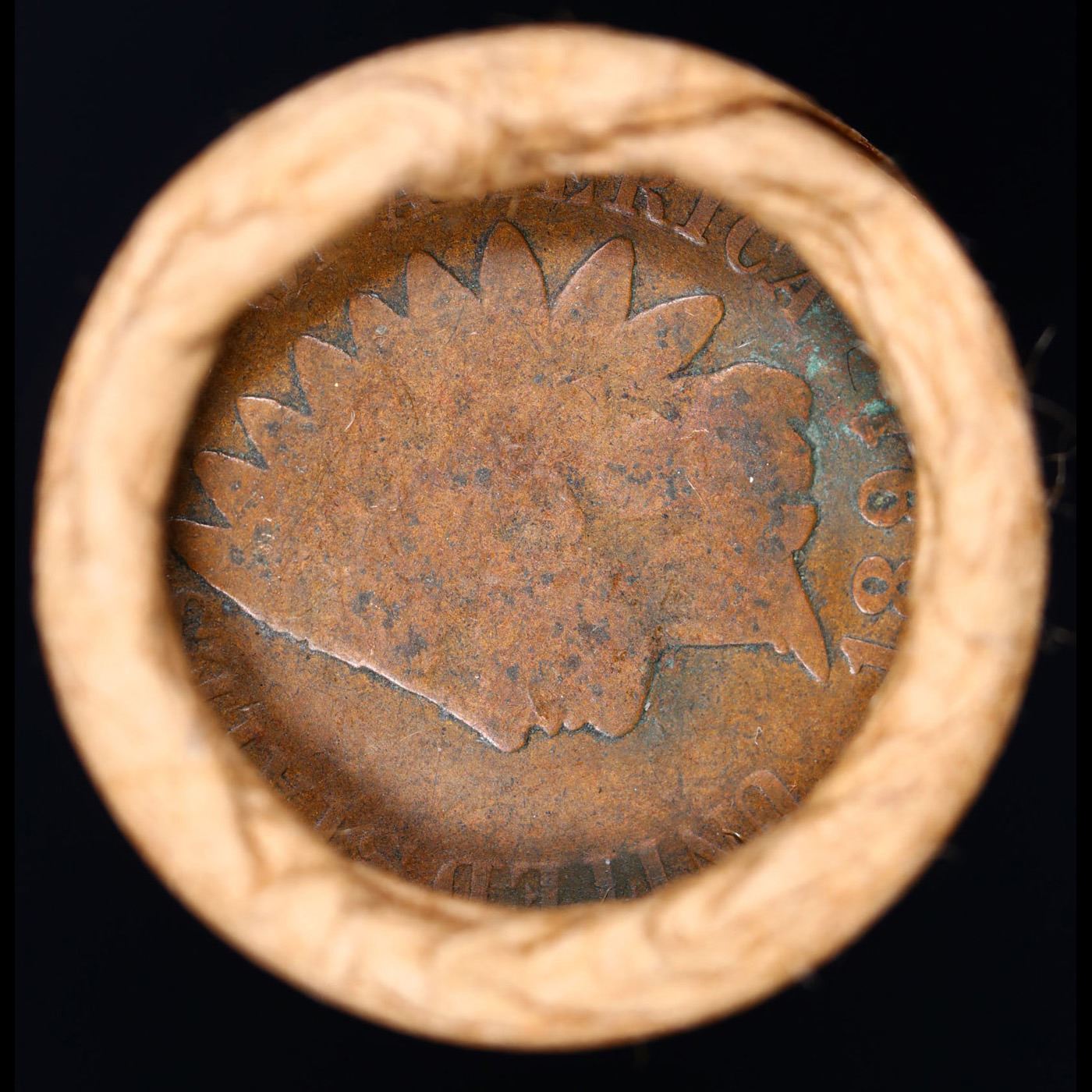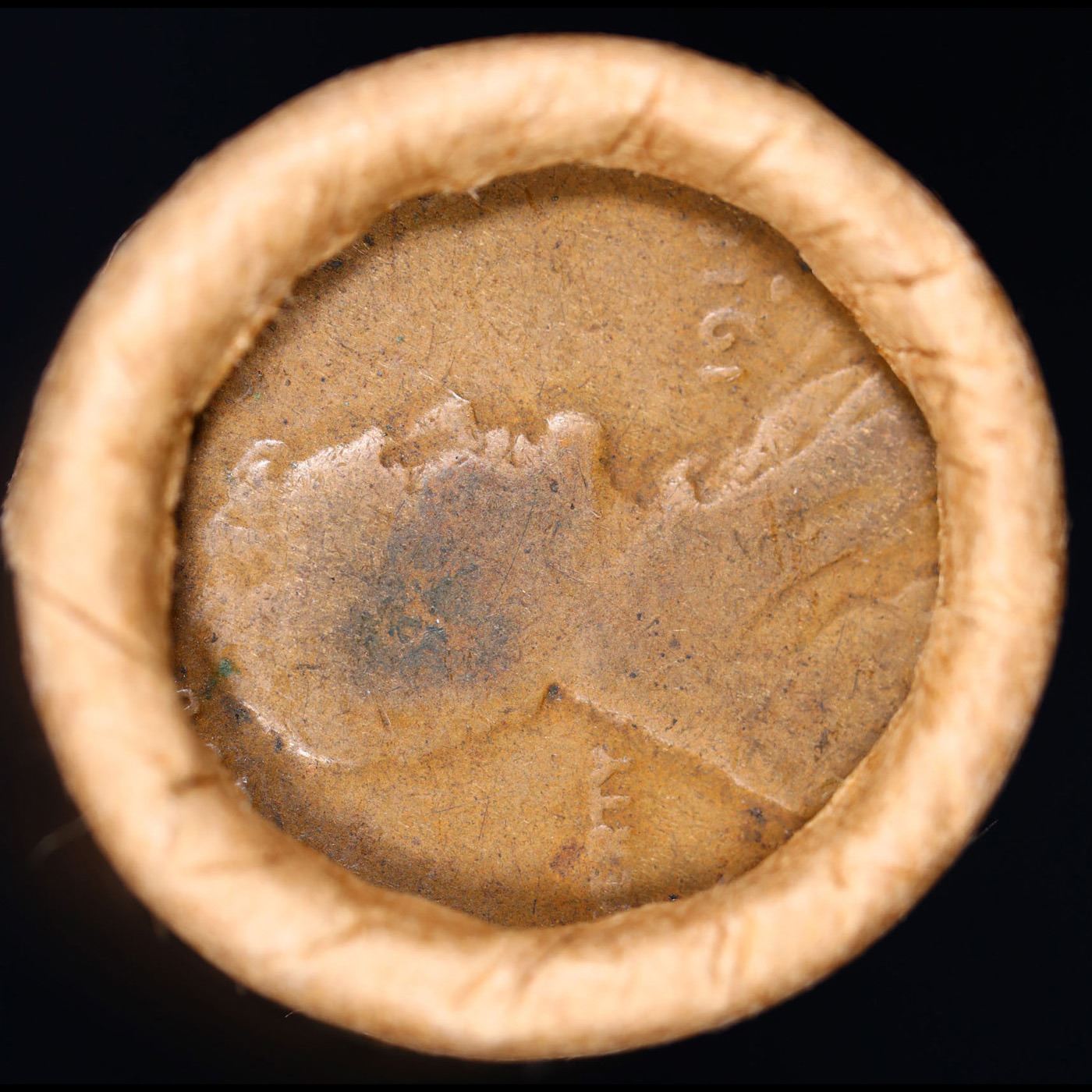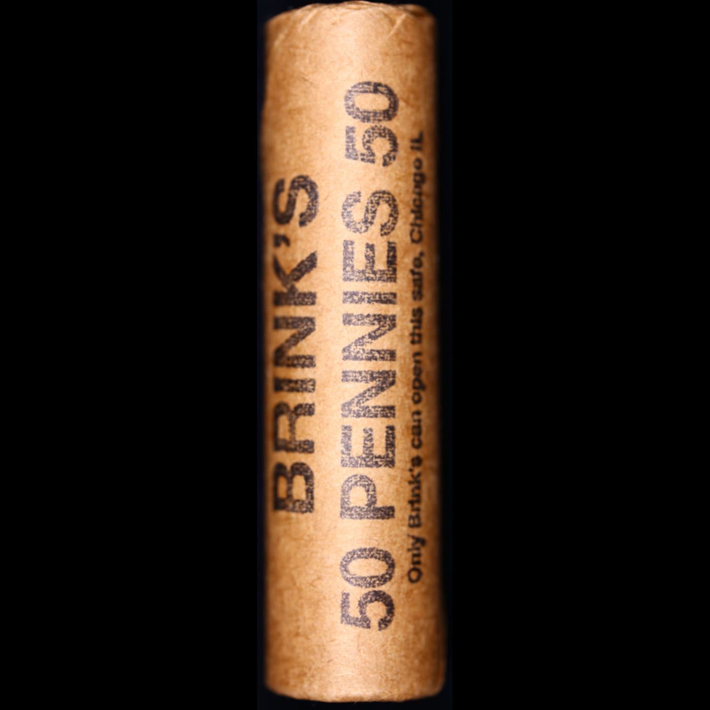 Mixed small cents 1c orig shotgun roll, 1918-d Wheat Cent, 1891 Indian Cent other end, brinks Wrappe